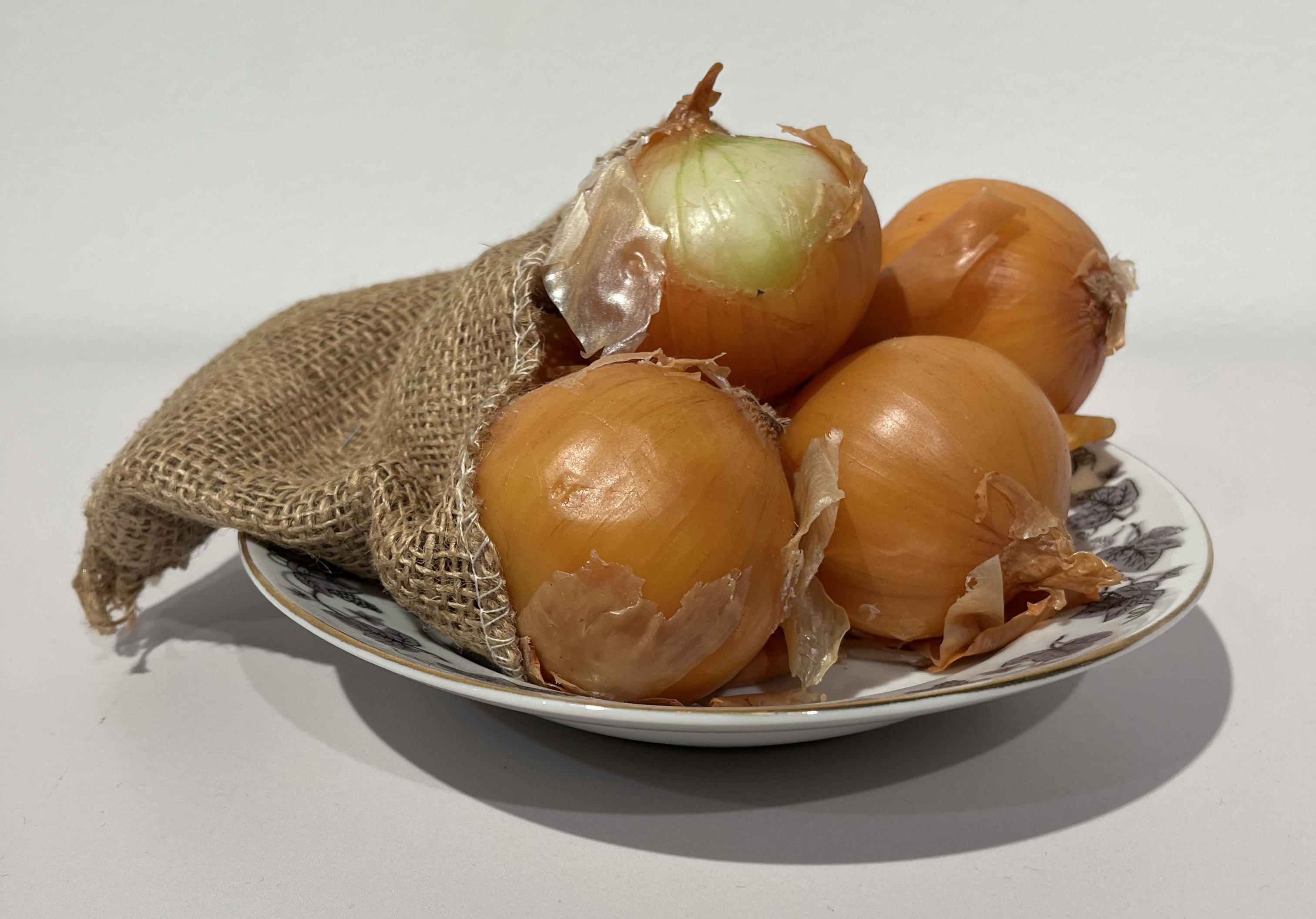 Right. Display of onions. Exhibition photos by Janet South except where noted otherwise.