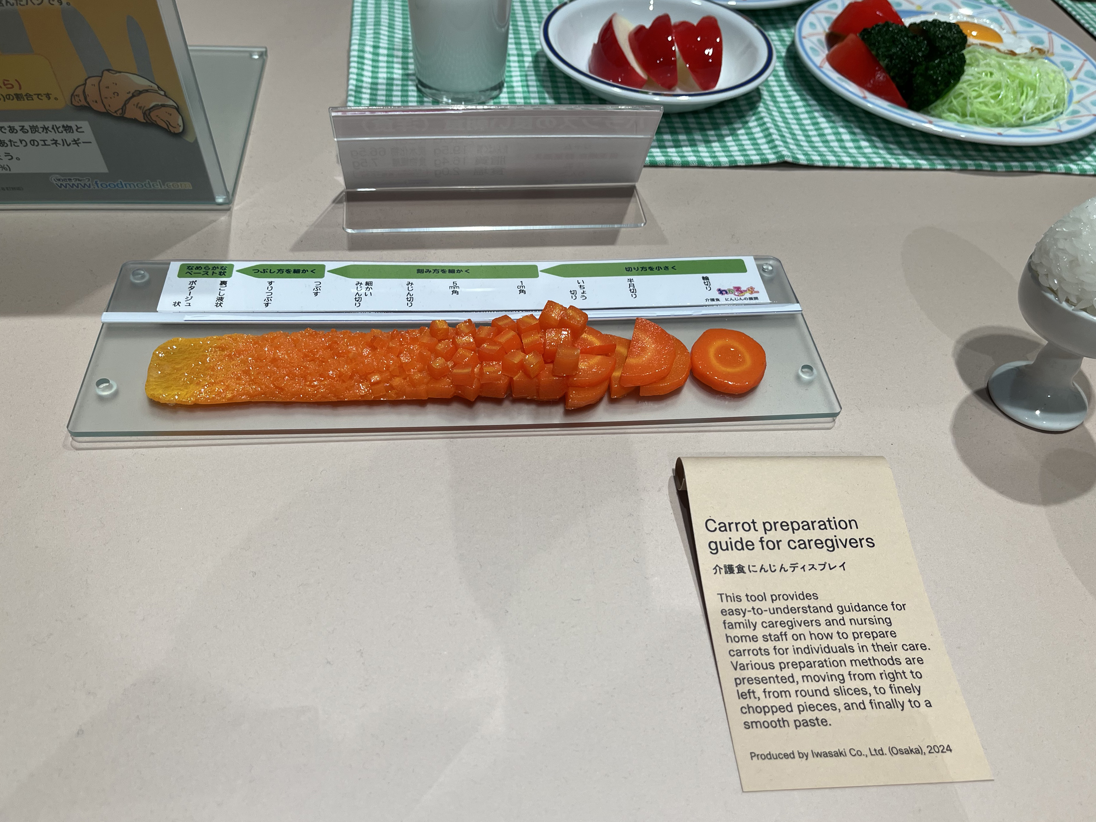 Food replica production extends beyond its function in the restaurant business. They are also used in education, hospitals and clinics to help teach nutritional practices such as portion control and demonstrate food preparation techniques for specialist diets. They are also used as reference point for farming and food production quality control by demonstrating desirable colour, size and consistency.