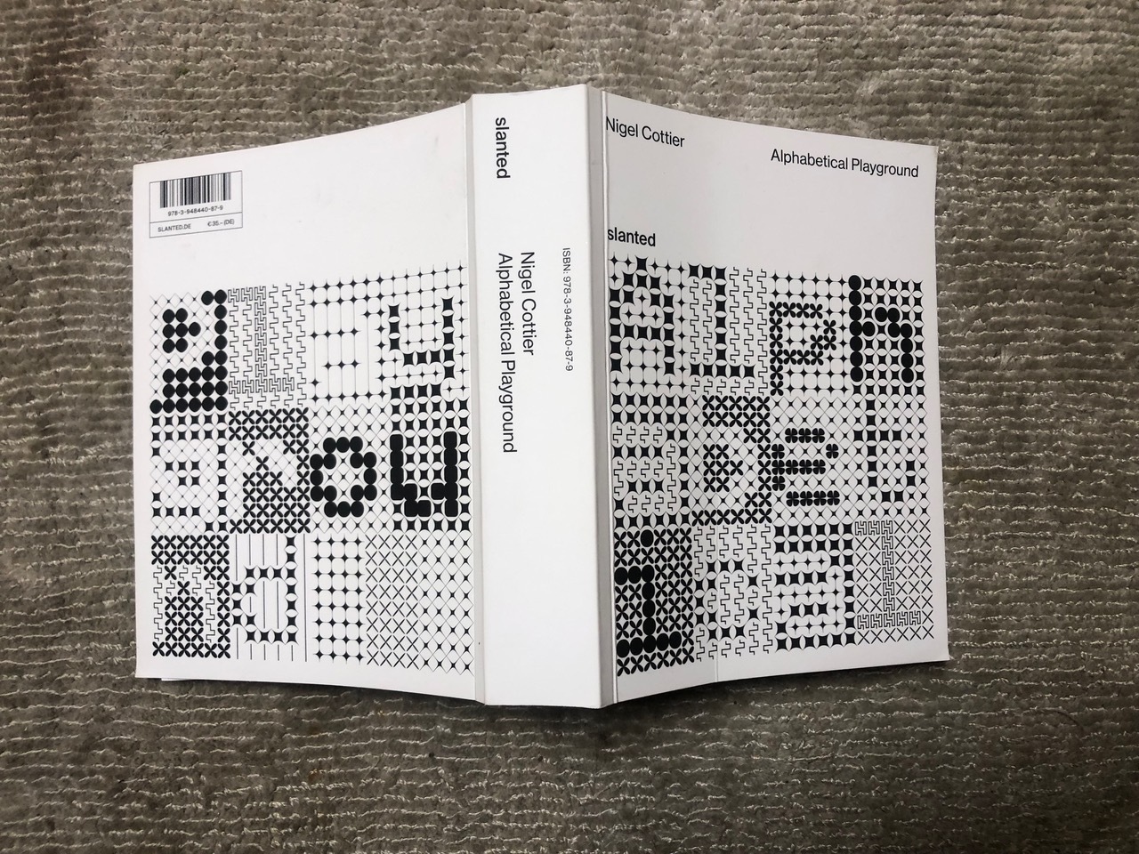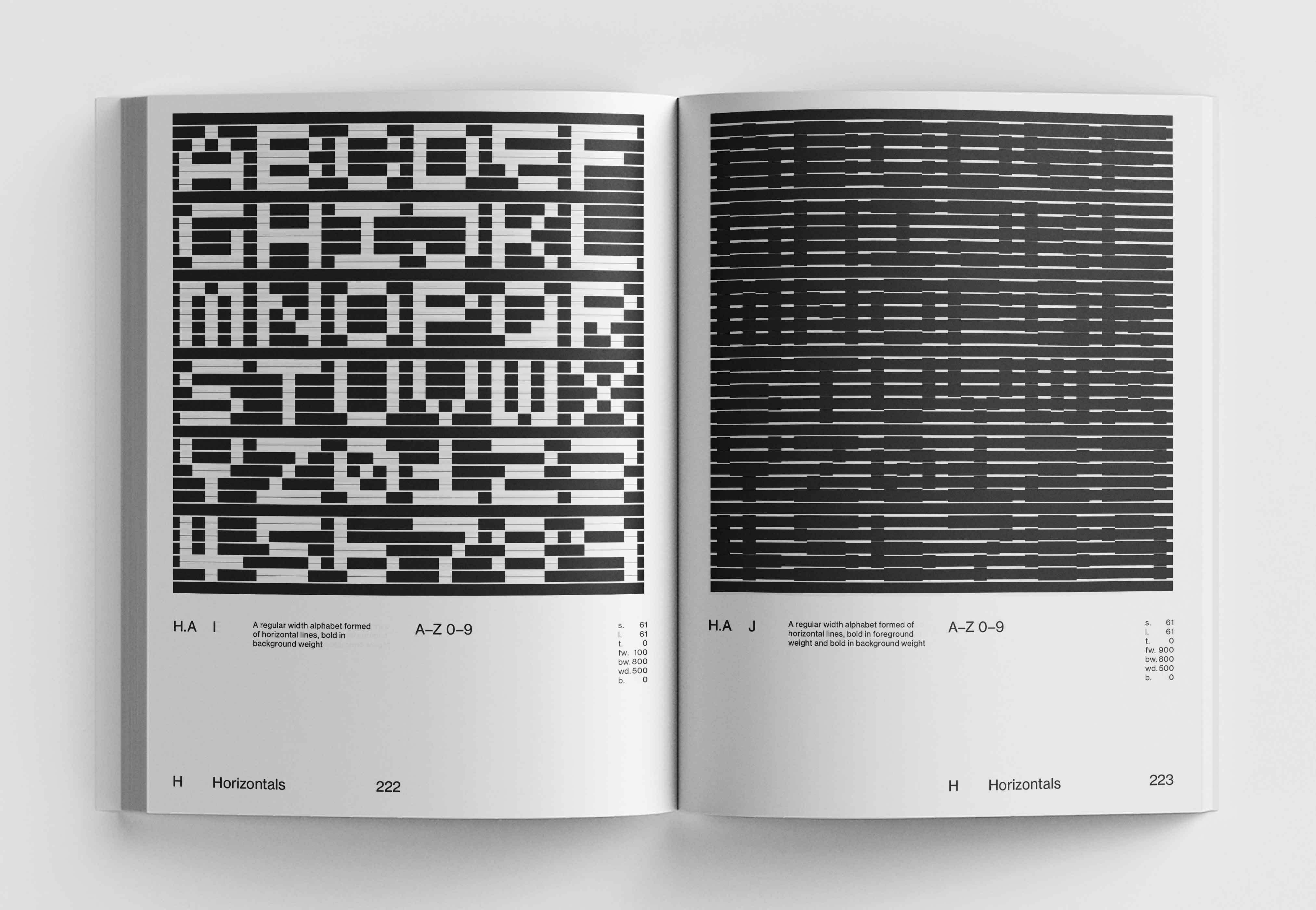 Cottier sets up the logical systems (each named using an Abecedarium of chapter titles - Alphanumeric, Bisect, Cursive, Dimensional, Geometry, Horizontals, etc.) and each typeface almost forms and designs itself from the preset parameters. The complexity of each system increases throughout the book and pushes legibility to the edge and over ‘… the alphabet always remaining remarkably impervious,’ as Hamish Muir notes in his foreword. Reading, and slowly understanding, the process and parameters for each system simply adds to the visual pleasure.