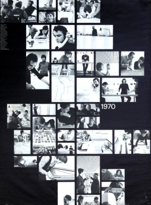 Photographs of ‘Design heaven’: Aicher leading the 80-strong team that designed the Regenbogen–Spiele (Rainbow Games, referring to its exuberant colour scheme) in 1972.