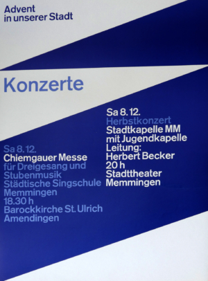 Concert poster, 1972. Aicher proposed this very 1970s-looking-curvy typeface for the 1972 Olympics. It would have made that scheme even more unique and complete than it already is.