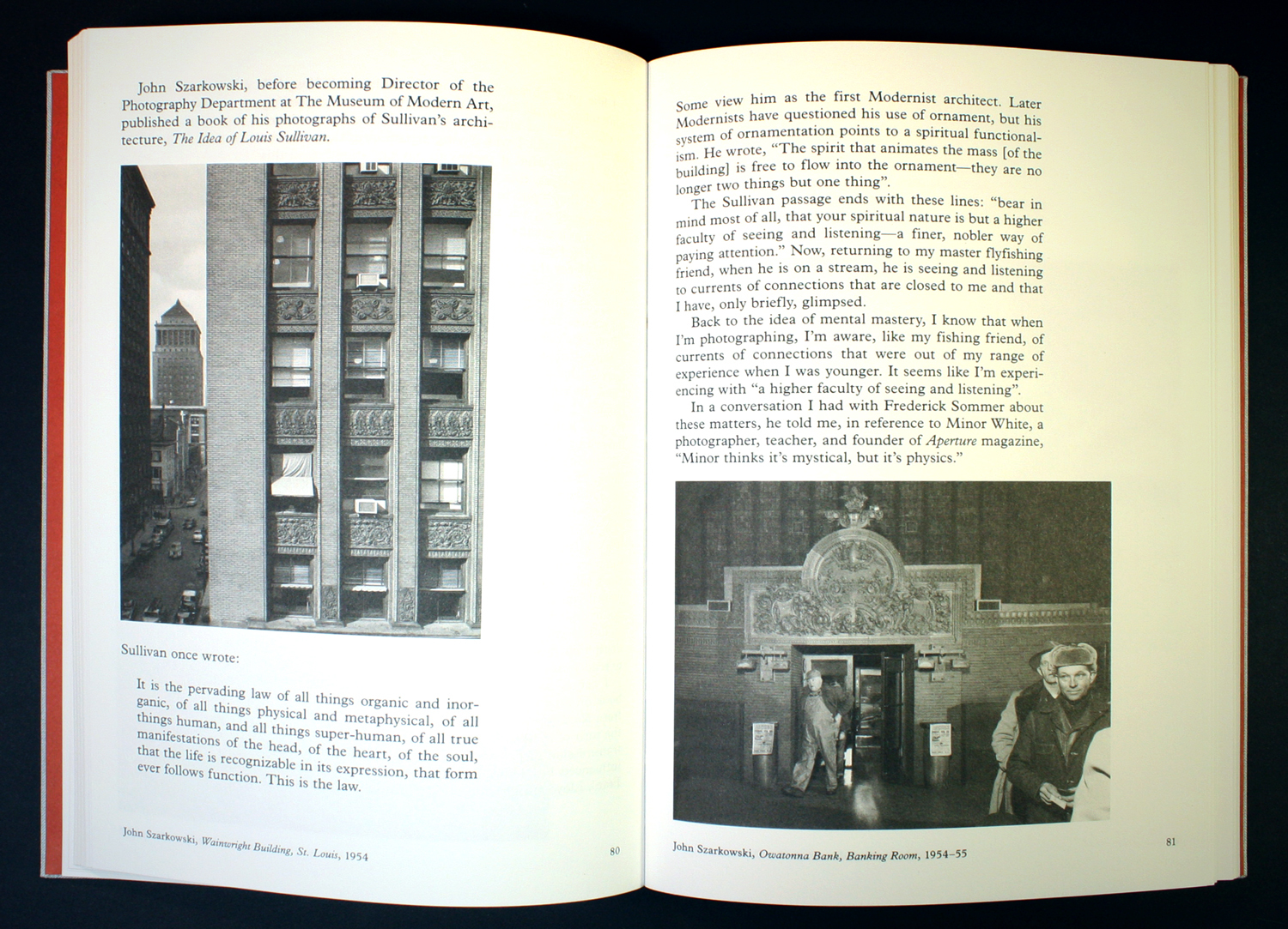 Spread, from the conversation with photographer and educator George Miles, featuring photos by John Szarkowski of buildings by Louis Sullivan.