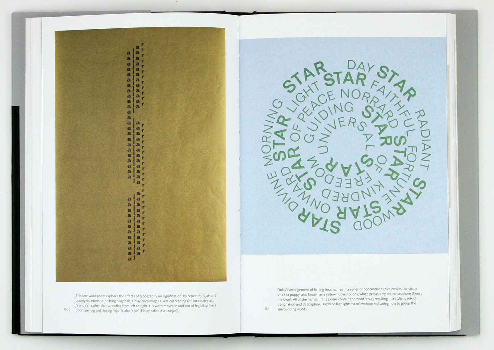 Work by Ian Hamilton Finlay. ‘Ajar’ (left) and ‘Sea-poppy 2’ from Fishing Boat Names, both 1968.