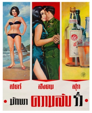 An anti-gossip poster from the 1960s in Thailand, which reads ‘Women, socialising and liquor often lead to secrets slipping’.
