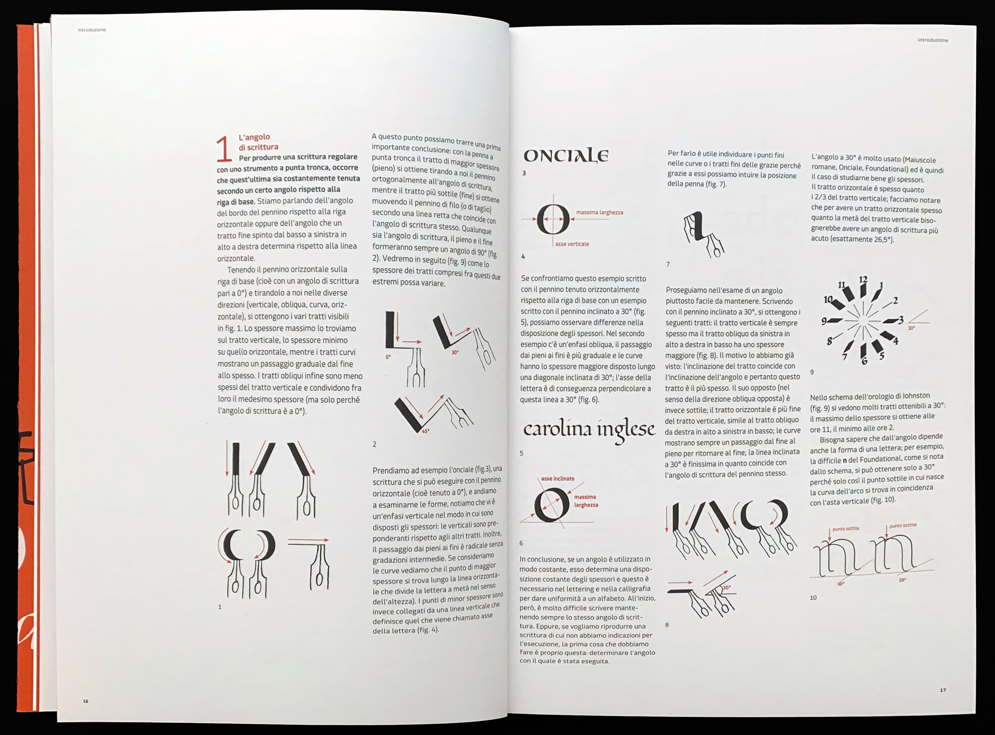 Spread from Manuale di Calligrafia on the range of movements and angles in lettering.