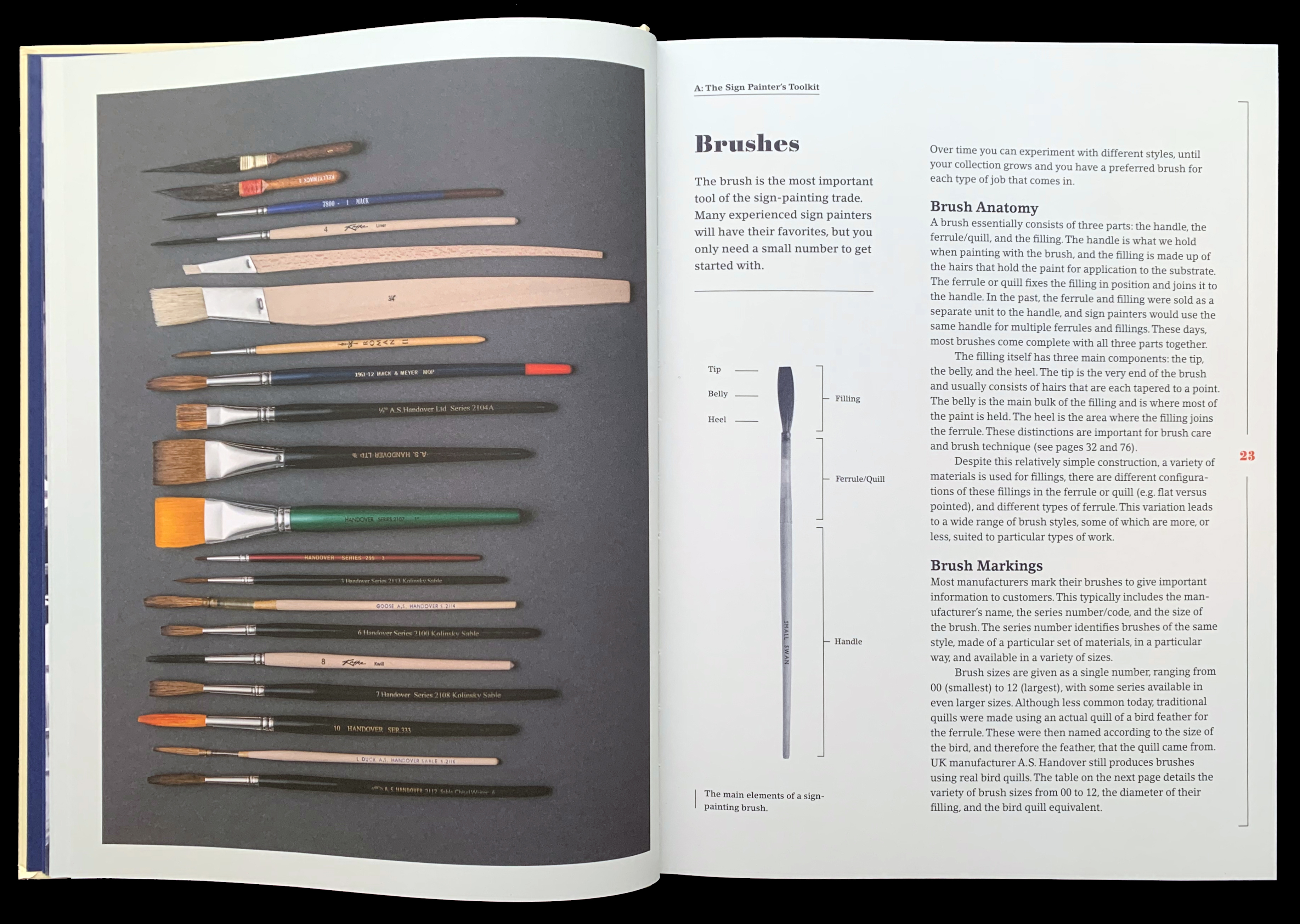 Spread from Sign Painting breaking down the anatomy of brushes.