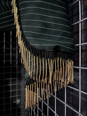 Hair grip fringe on a garment.
