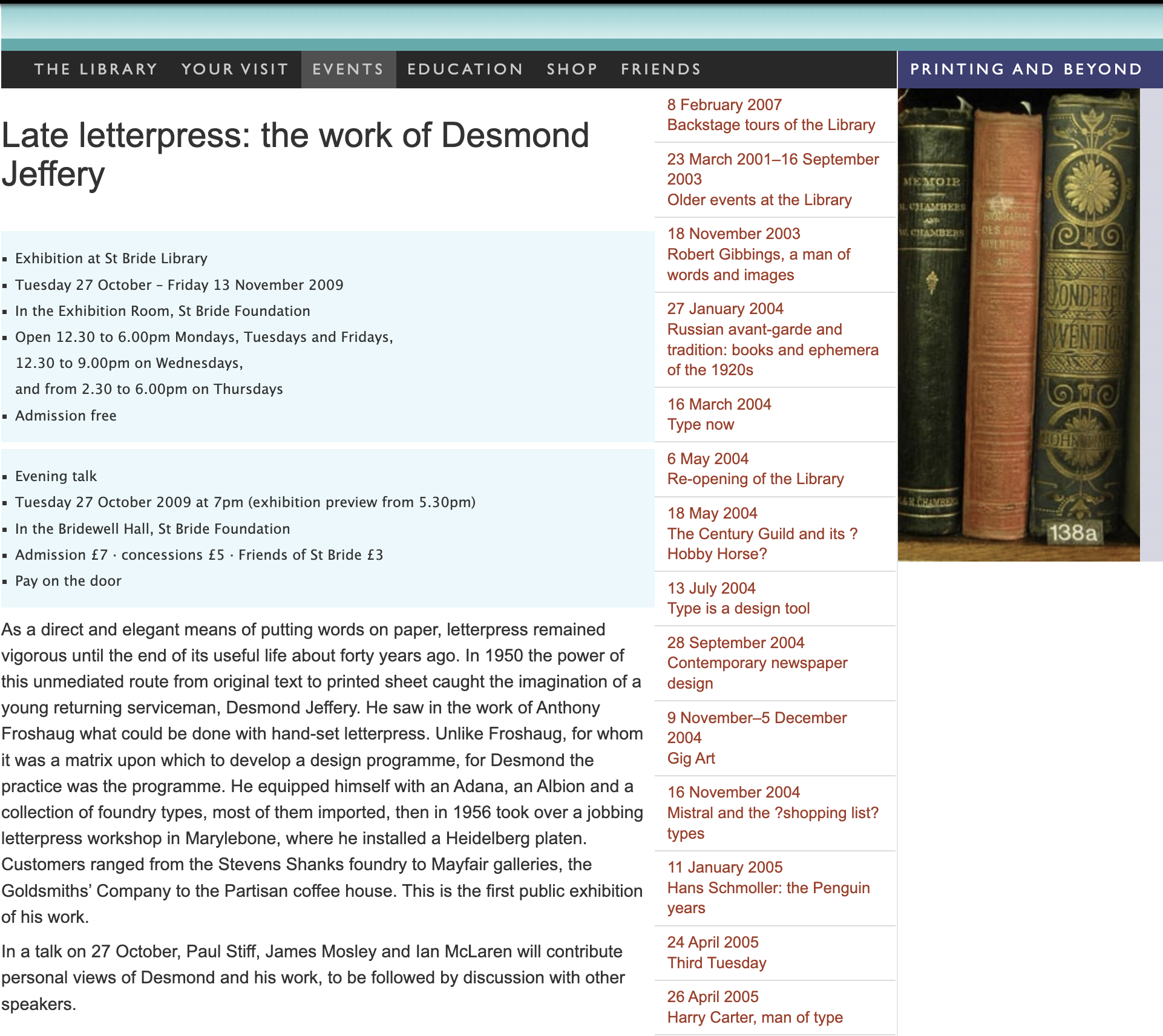 ‘Late Letterpress: The Work of Desmond Jeffery’ is at St Bride Library, Bride Lane, Fleet Street, London EC4Y 8EE, until 13 November 2009.