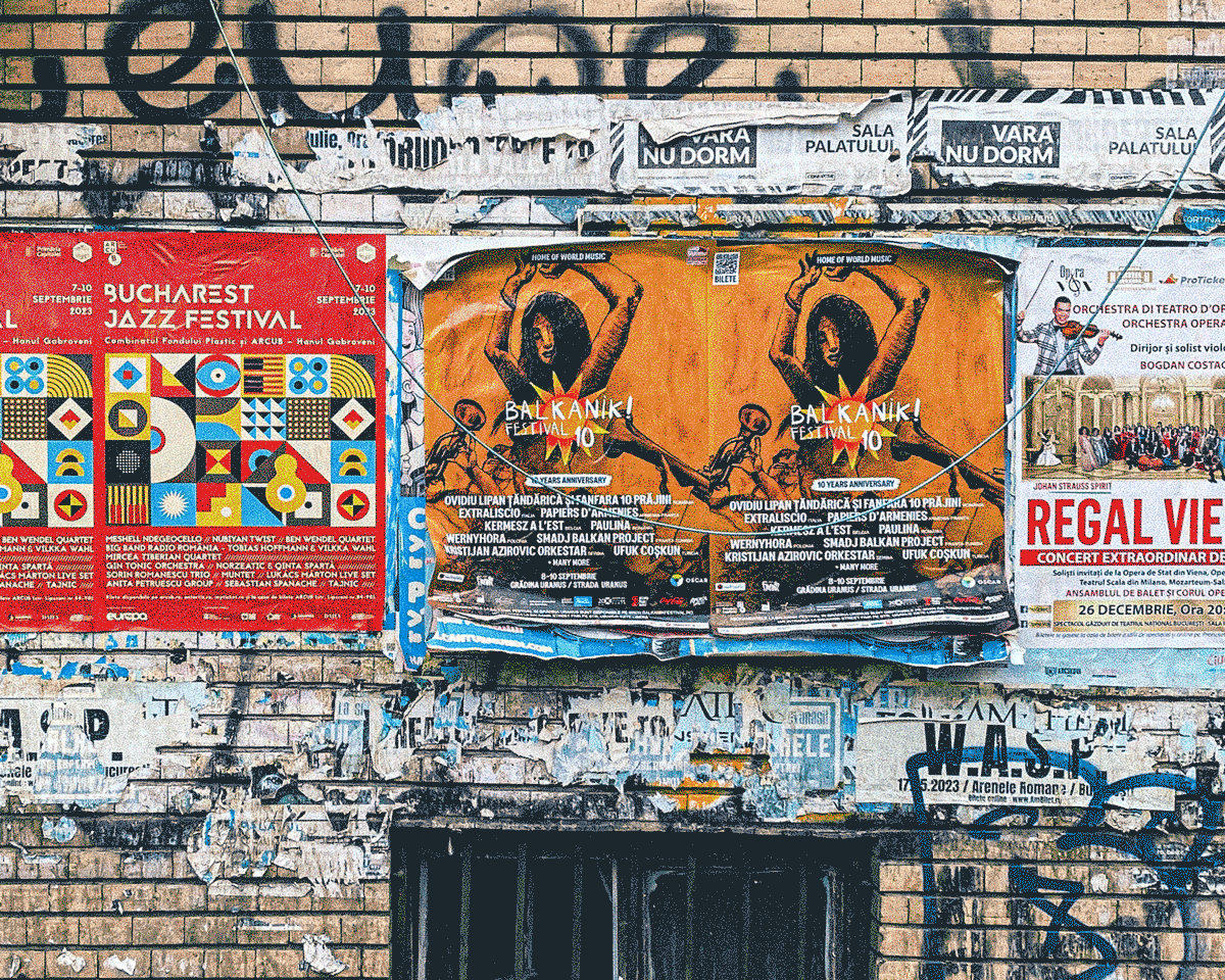 Photographs by Andrei Grosu documenting posters plastered throughout Bucharest.