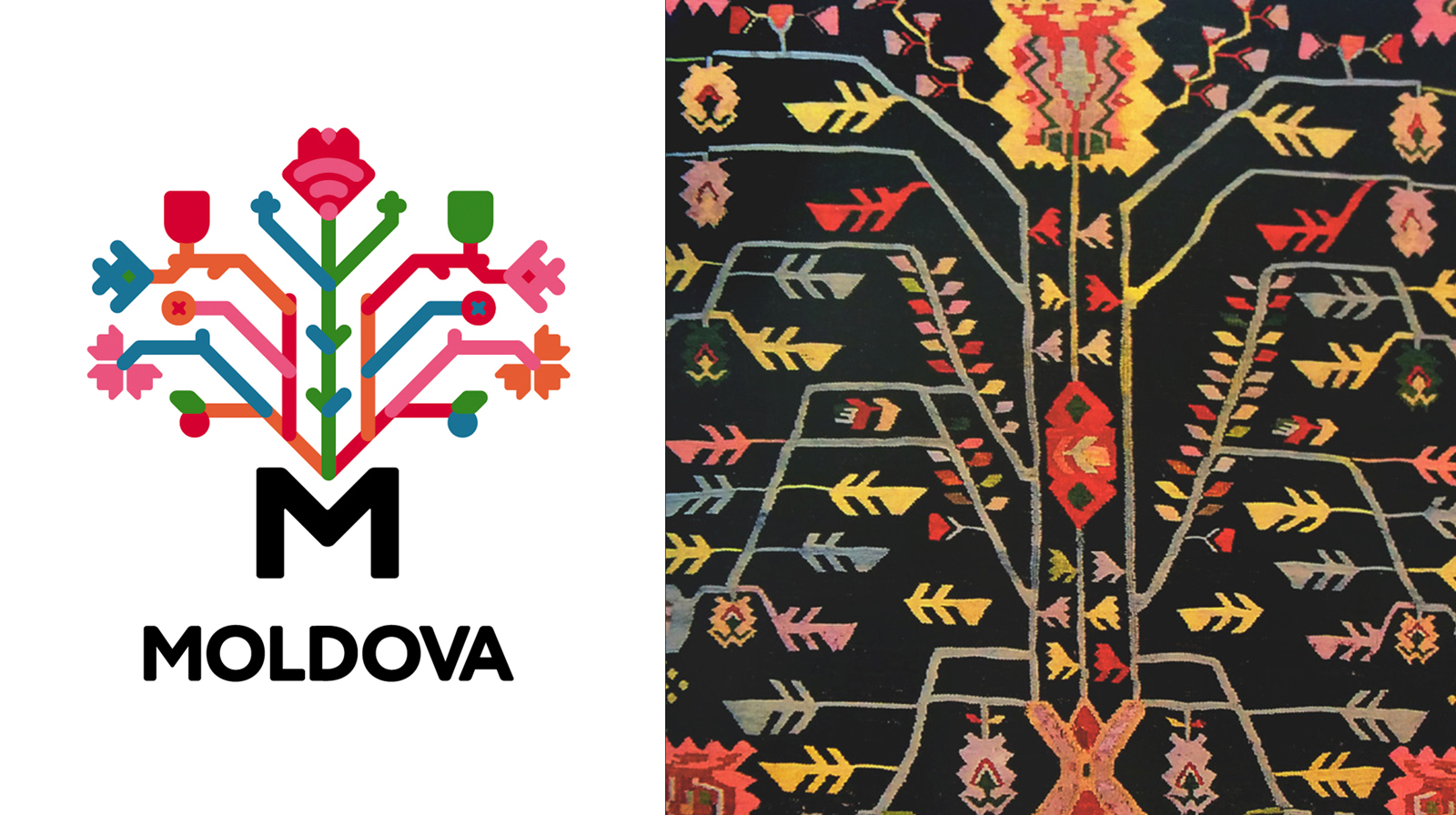 In 2018, the Republic of Moldova launched its official national brand for international promotion. The visual system for the ‘Tree of Life’ was based on traditional carpet and embroidery patterns.