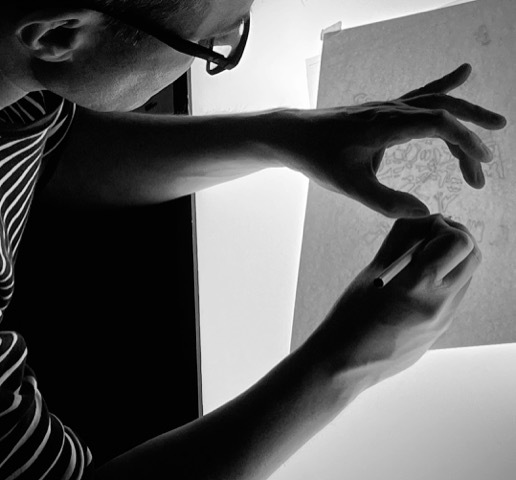 Christopher Wilson working at his studio, Oberphones.