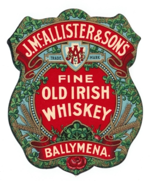 Label for Ballymena Old Irish Whiskey from James McAllister & Sons.
