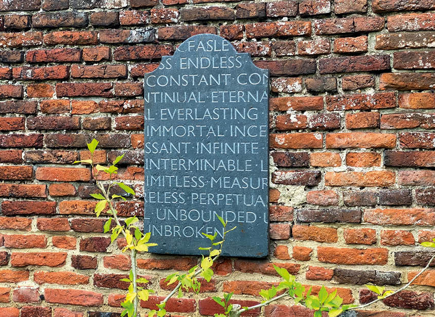 Stone Memory, 2009, by Charles Gurrey at the Art & Memory Collection, Grimsthorpe Castle, Lincolnshire. The text is the last line of Pablo Neruda’s poem ‘The Creation’.