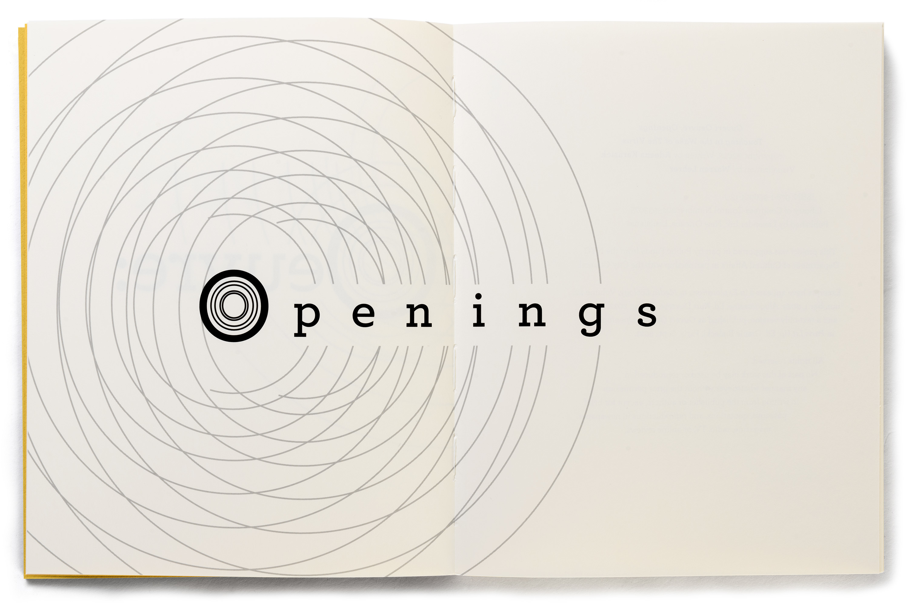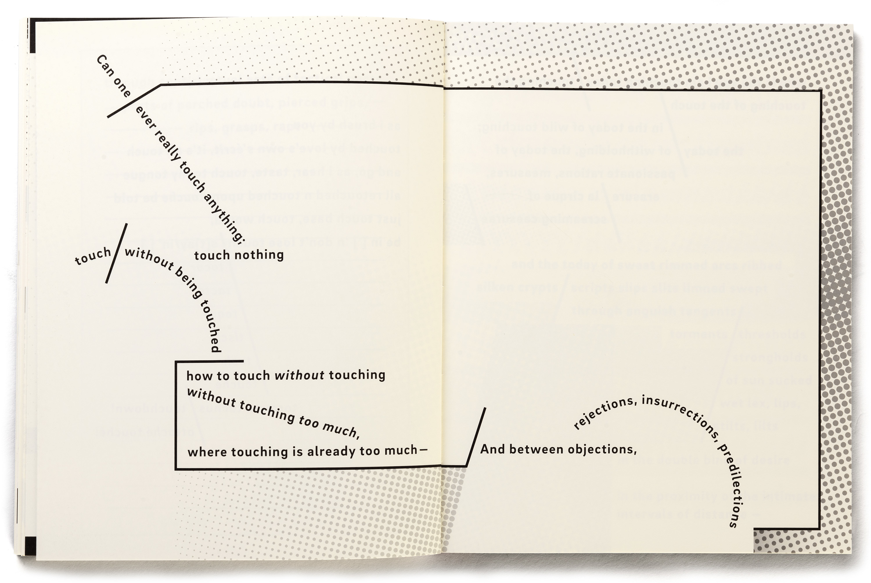 Introductory spread from Ouvert Oeuvre: Openings & Touching in the Wake of the Virus.