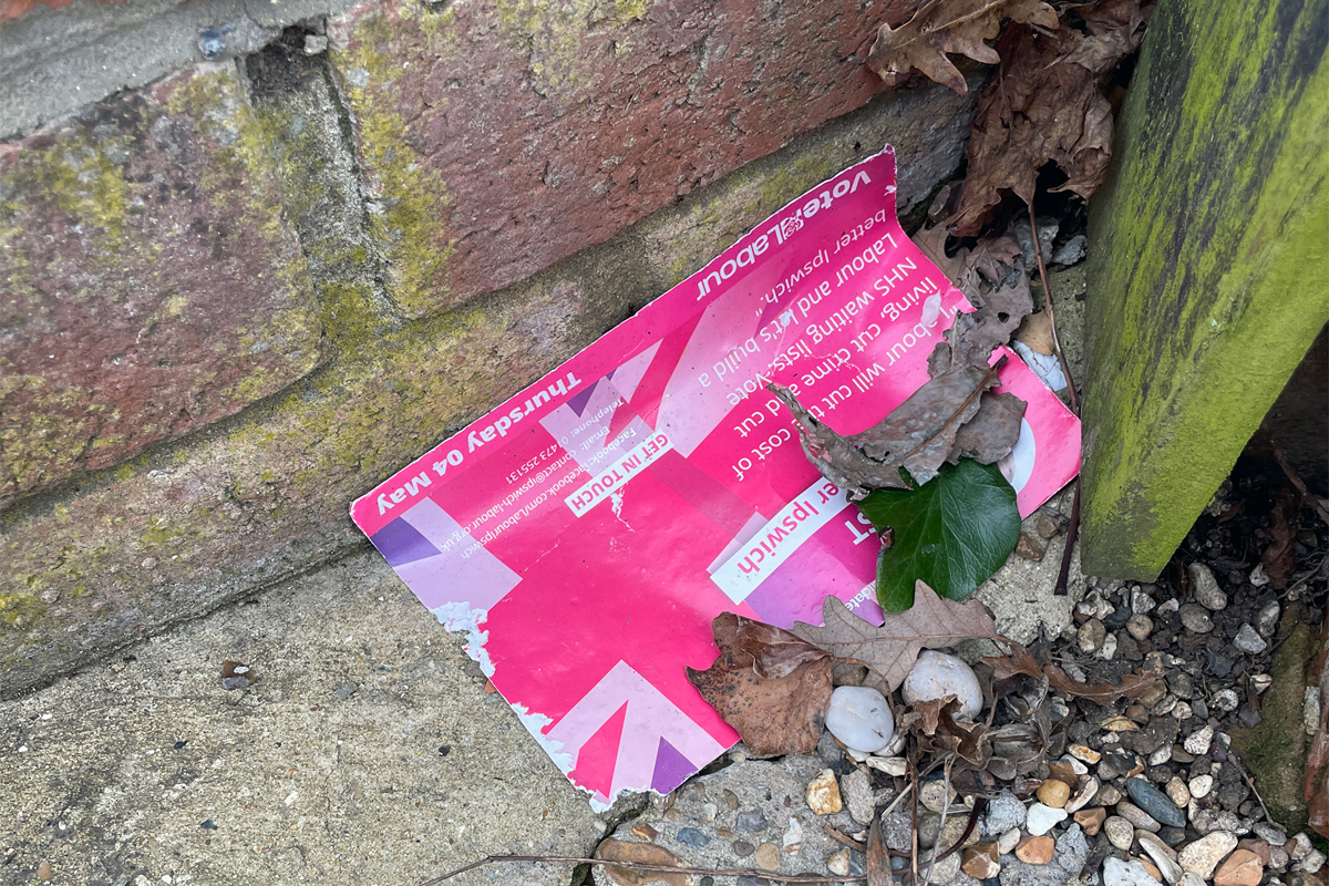 Metaphors – even unintentional ones – can deliver a powerful critique. Nigel Ball inspects the flag-strewn waste in UK streets
