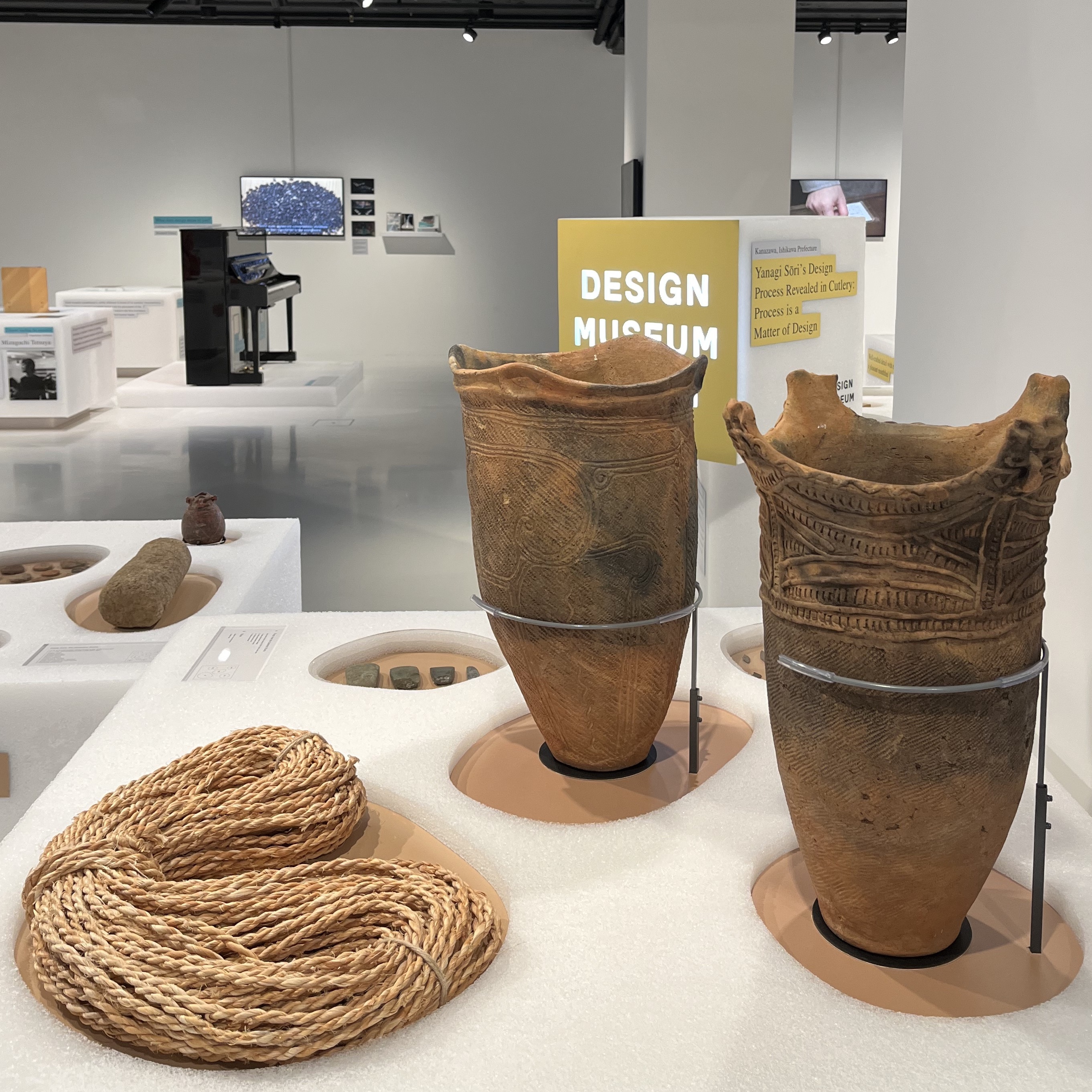 Architect Tane Tsuyoshi selected earthenware from the Jōmon Period more than 10,000 years ago. These robust pots were hand-built without a wheel and decorated using rope-work – Jōmon means cord-pattern.