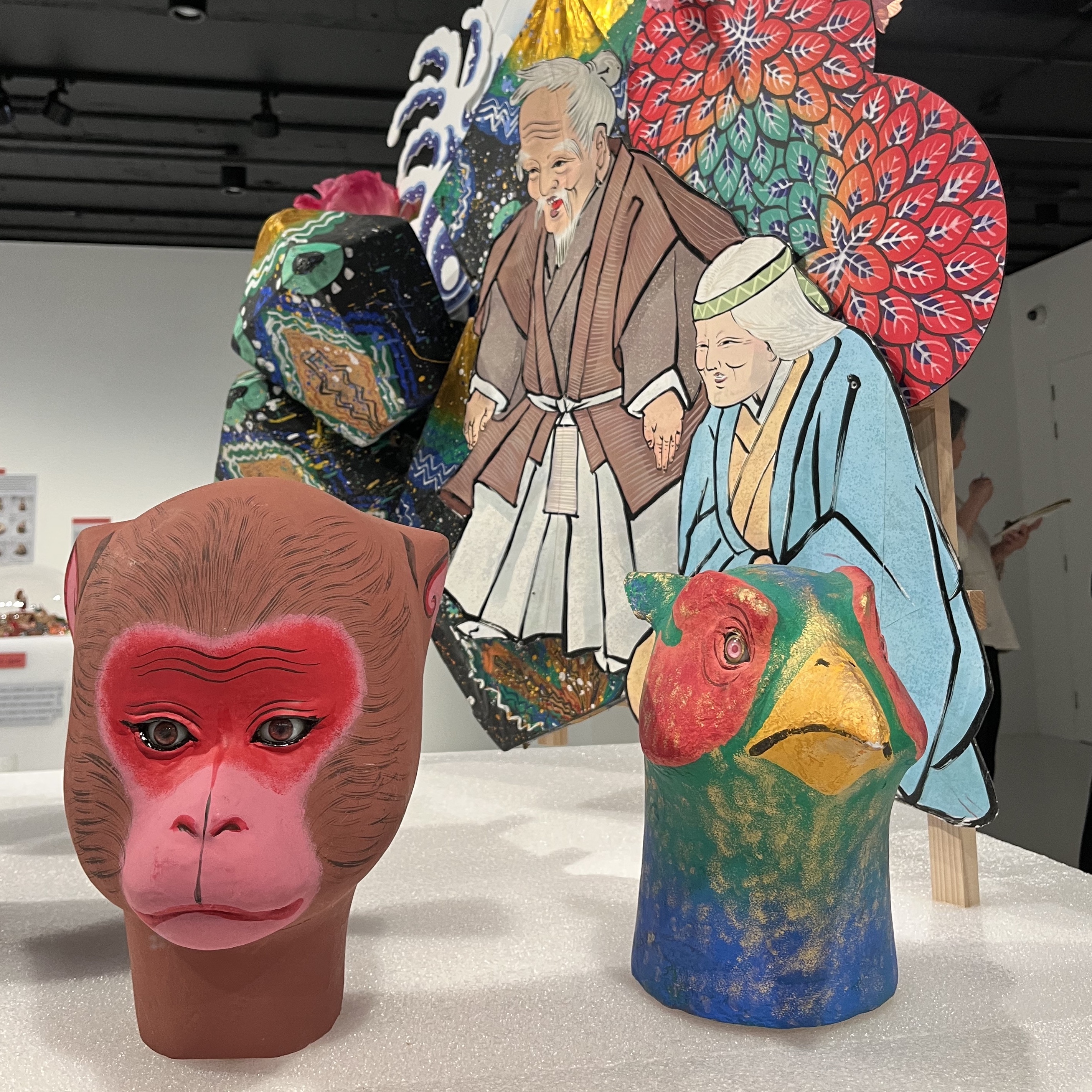 The designers and their chosen treasure are each presented on a white foam display cube which gives some background to the decision-making process and explains the item’s significance in Japanese culture. Text is displayed on every side of the cubes, encouraging the visitor to walk around and engage fully with the story.