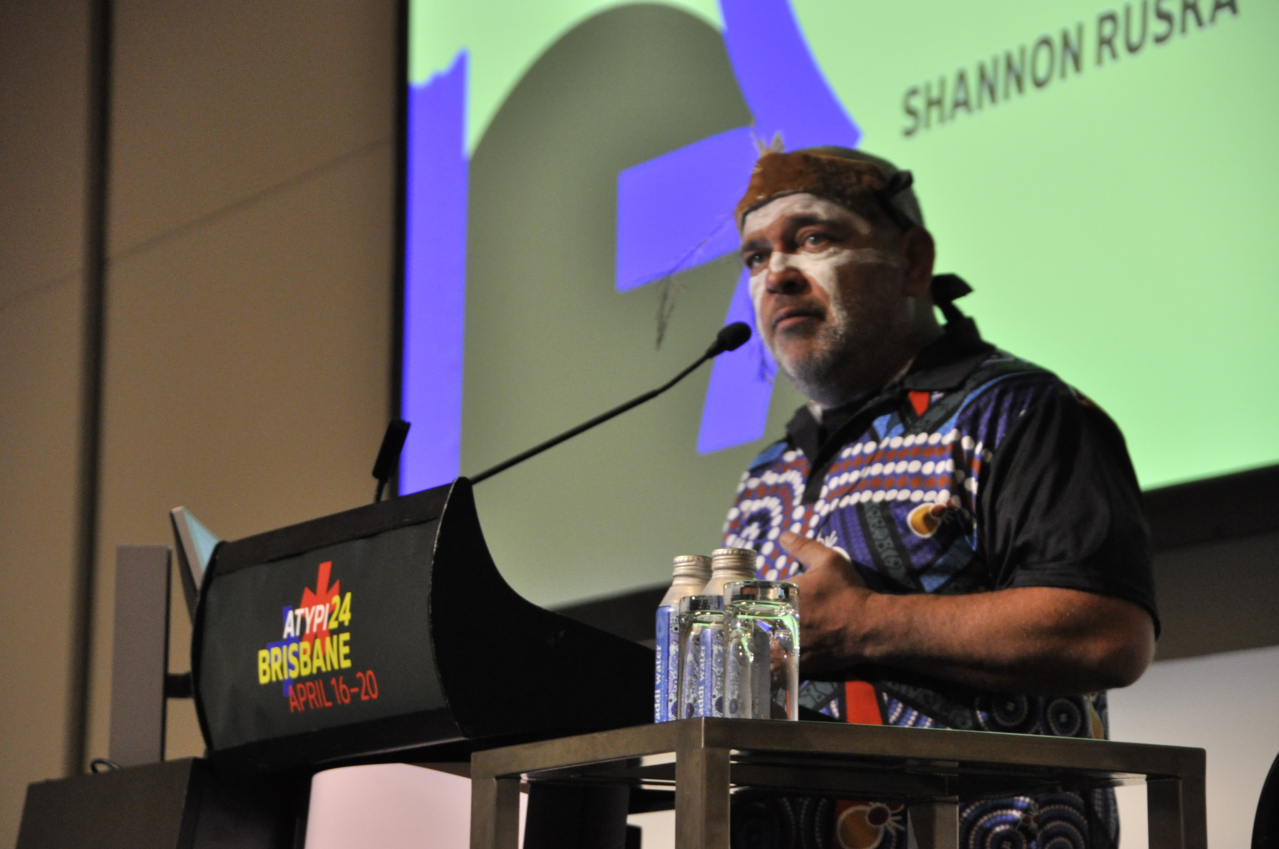 Shannon Ruska delivers ‘Welcome to Country’, a bridge between the Indigenous custodians of the land and visitors, which began the day on Wed 17 April 2024.