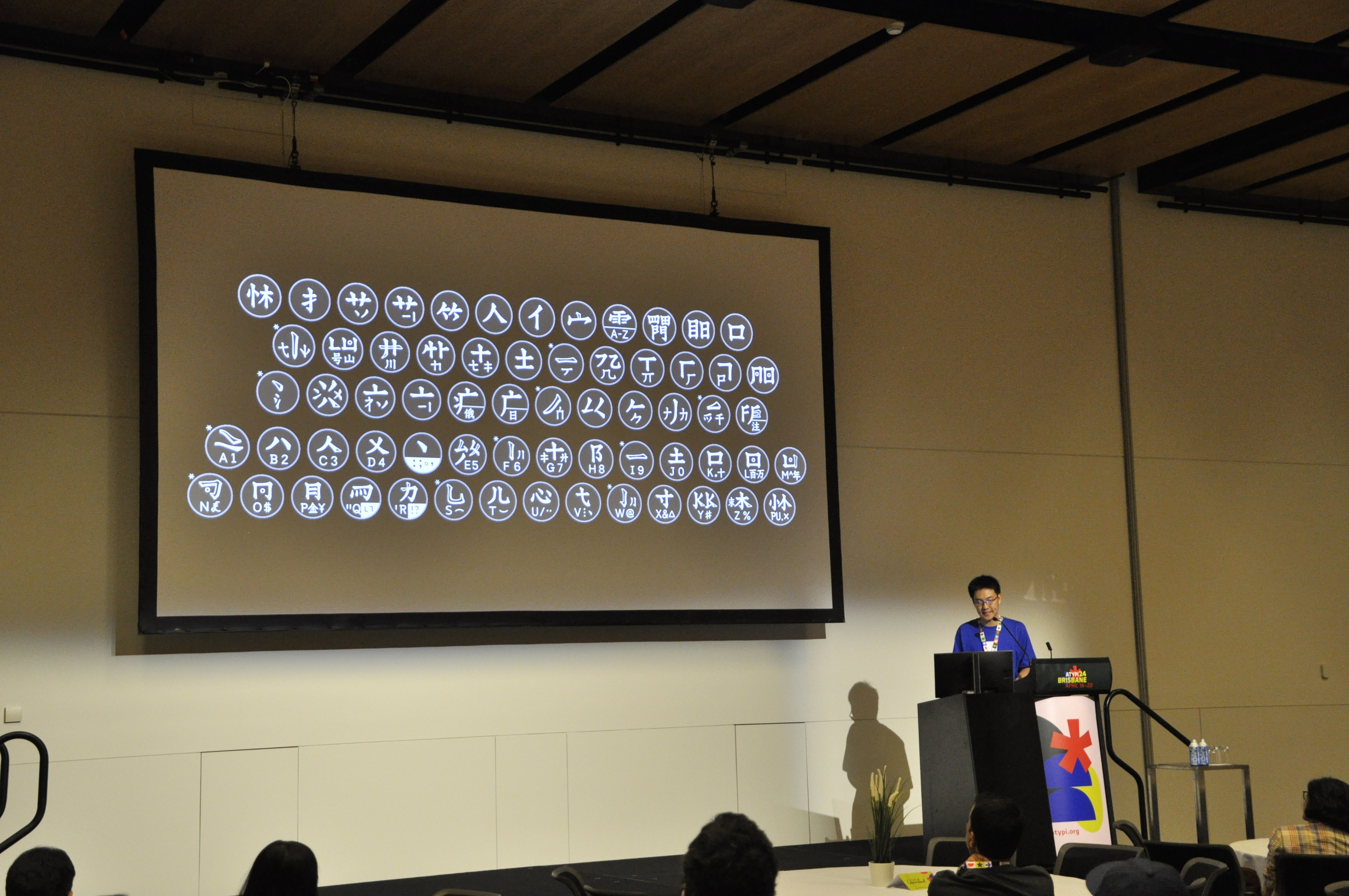 The kickoff talk on the first morning was by Min-young Kim, a Tokyo-based Korean type designer, in which she made it clear that even the Chinese-derived characters in the CJK (Chinese-Japanese-Korean) font world get different treatments in the typography of each country. Her talk was followed by Adobe’s Nat McCully on the text-layout challenges of CJK fonts whose shapes are not square. There were a number of later talks that touched on CJK typography, including Willie Liu on reviving a Chinese typewriter face and an intriguing dialog between Tao Di and Ryota Doi about recent trends in how type is being used in China and Japan.