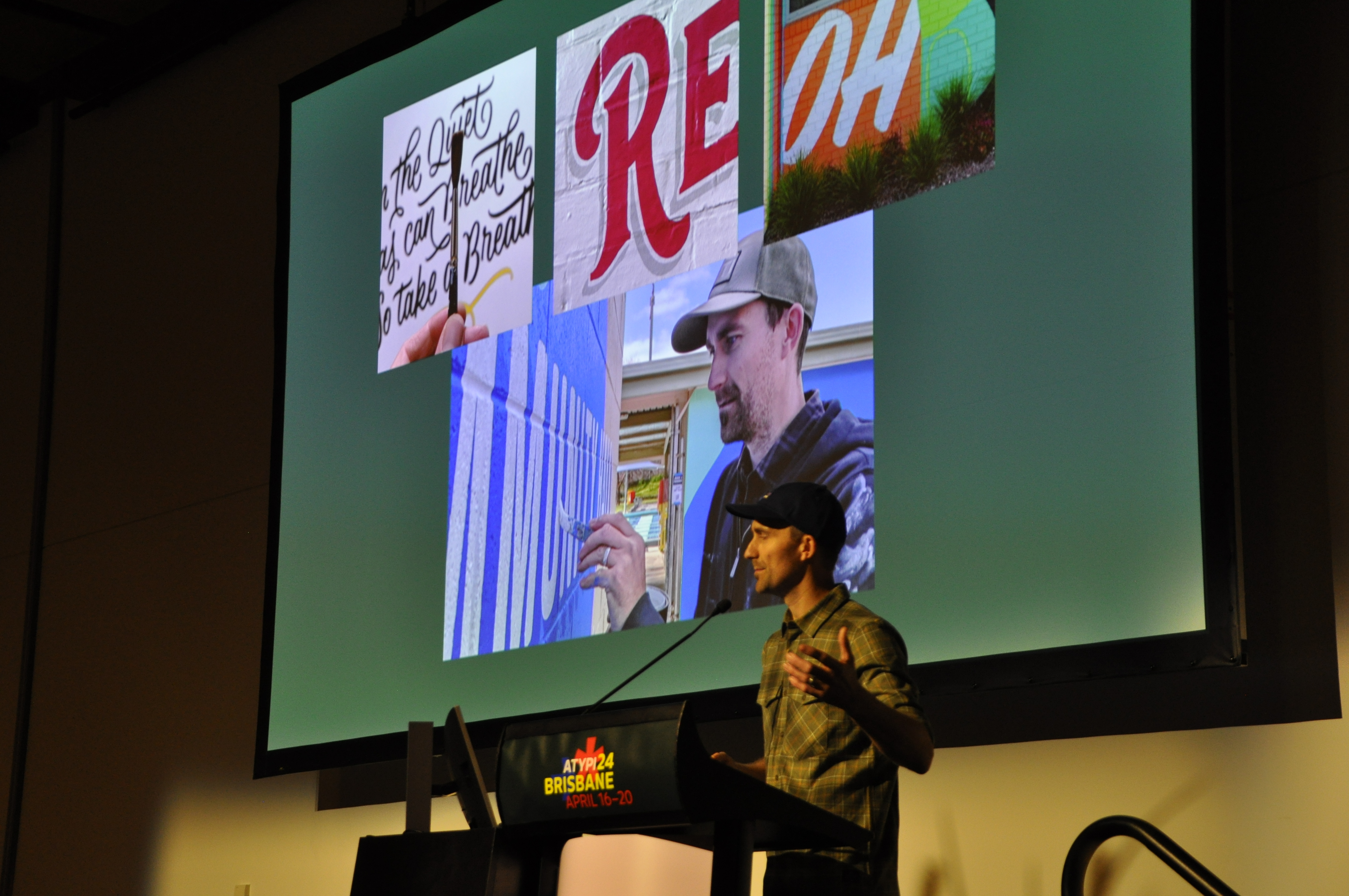 A strong thread of lettering ran through the conference. Co-organiser Dominique Falla runs Typism, an annual conference on the Gold Coast just south of Brisbane; Typism was celebrating its tenth anniversary with an exhibition and a lively talk by Dominique. Despite its name, Typism seems to focus mainly on lettering, with occasional incursions into type design and calligraphy.