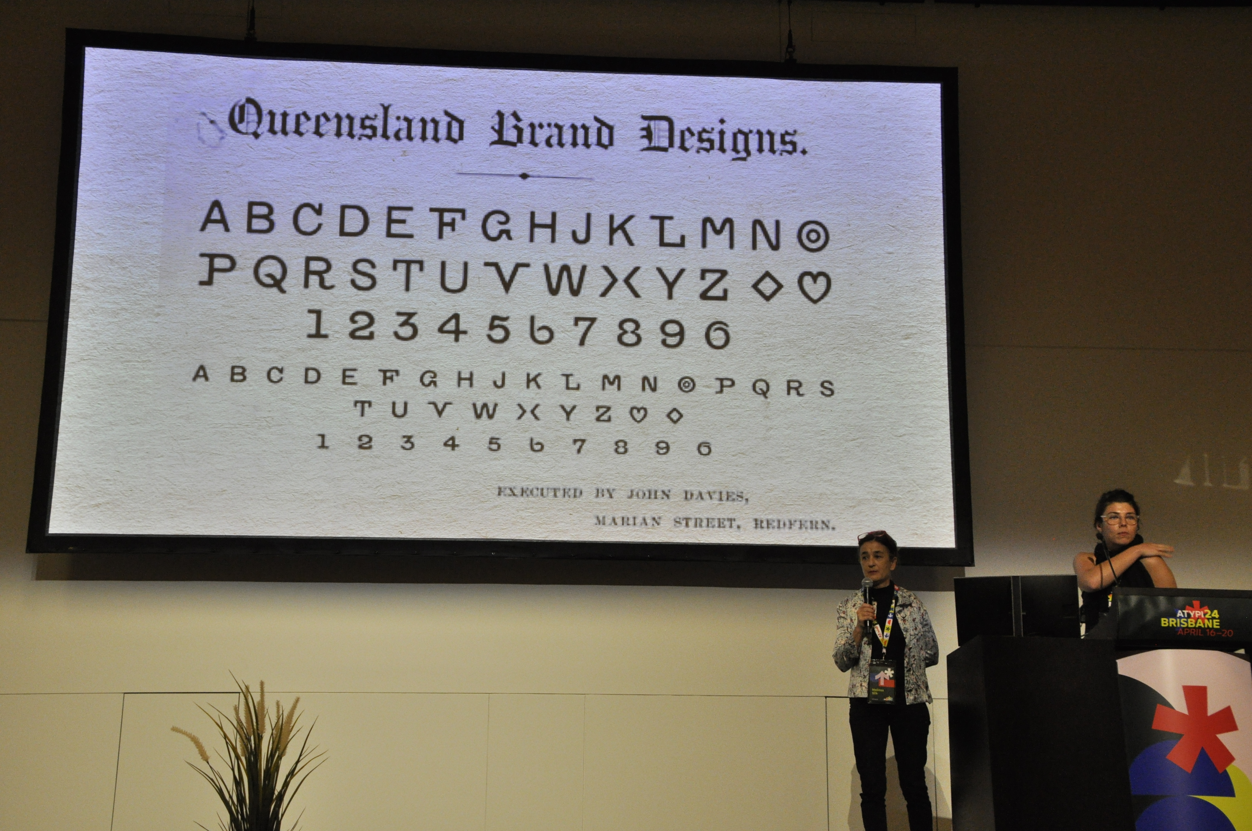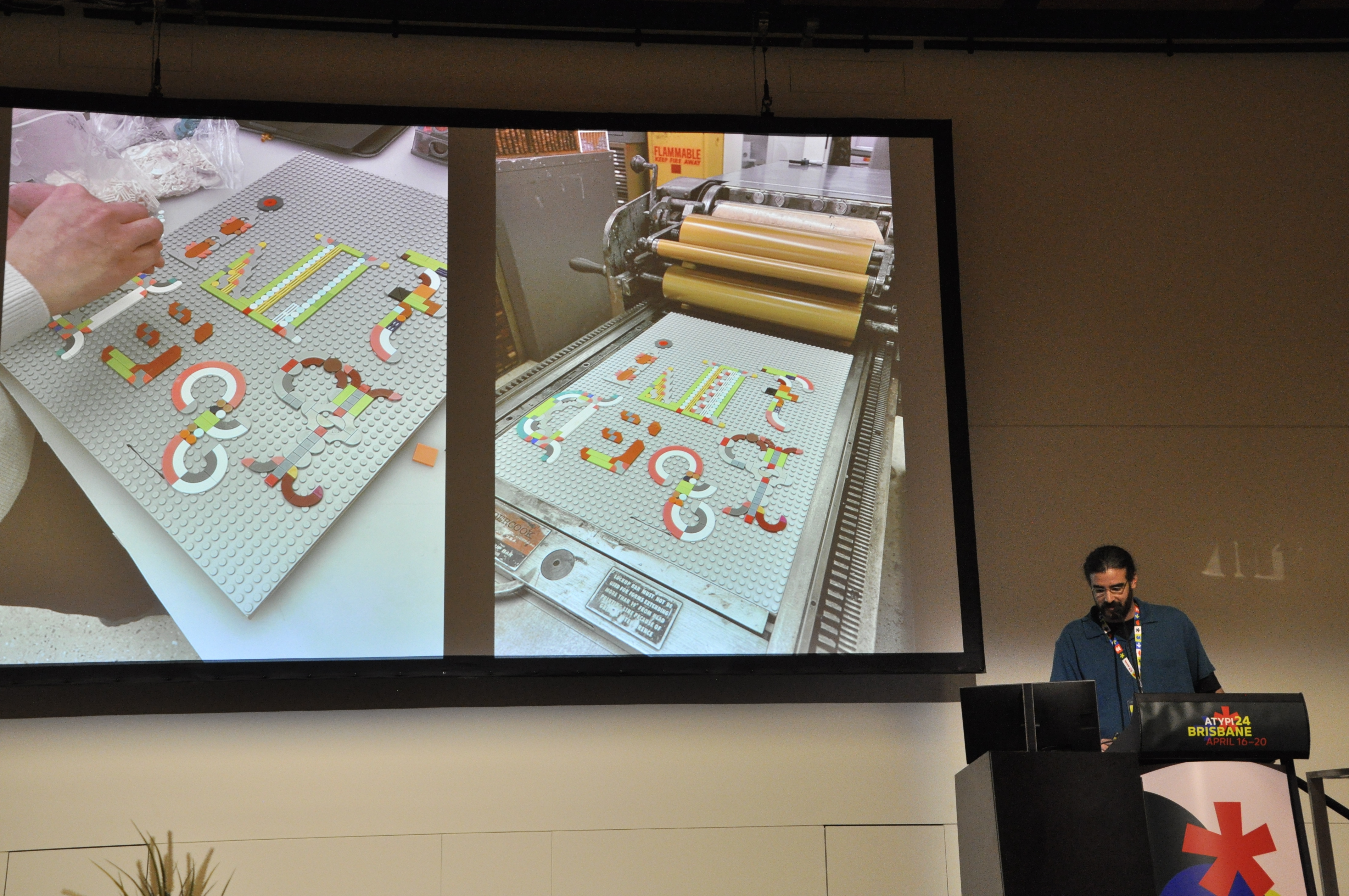 And then there was ‘Bovine Pyroglyphics’, the first talk on Thursday: a well illustrated presentation from Clint Harvey, Dzintra Menesis and Melissa Silk about the alphabets developed for, and from, cattle brands in northern Queensland. That was followed by Pedro Neves on letterpress LEGO fonts. Yes, really.