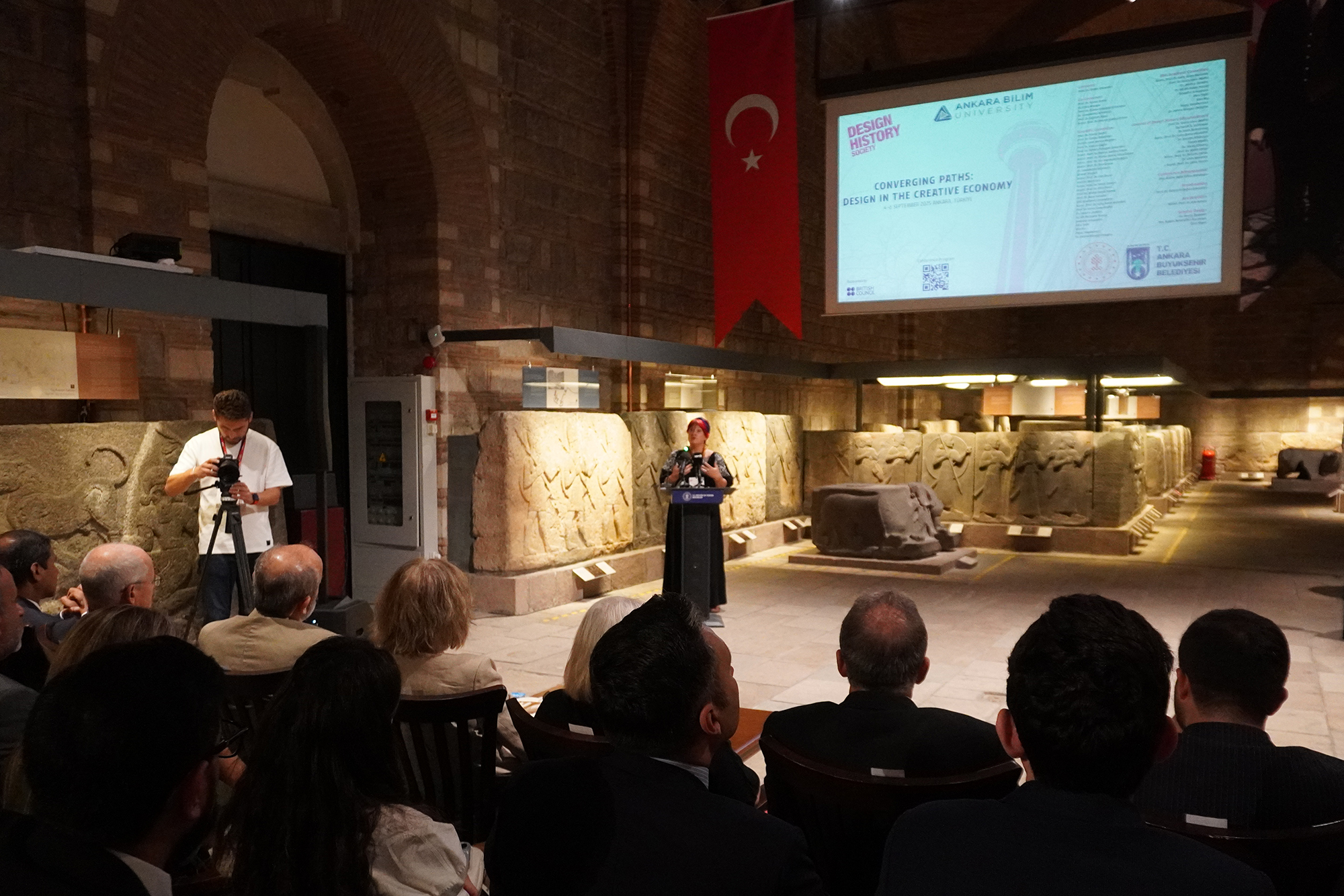 British Council poster (designed by Johnson Banks, 1998). Top. Opening event at the Museum of Anatolian Civilizations, Ankara. Photograph: Ankara Bilim University.