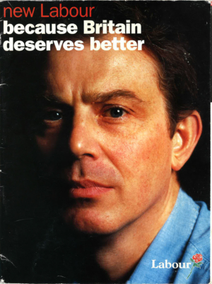 Cover for the magazine version of the 1997 New Labour manifesto, design by Giant. Below. Inside spread of the magazine.