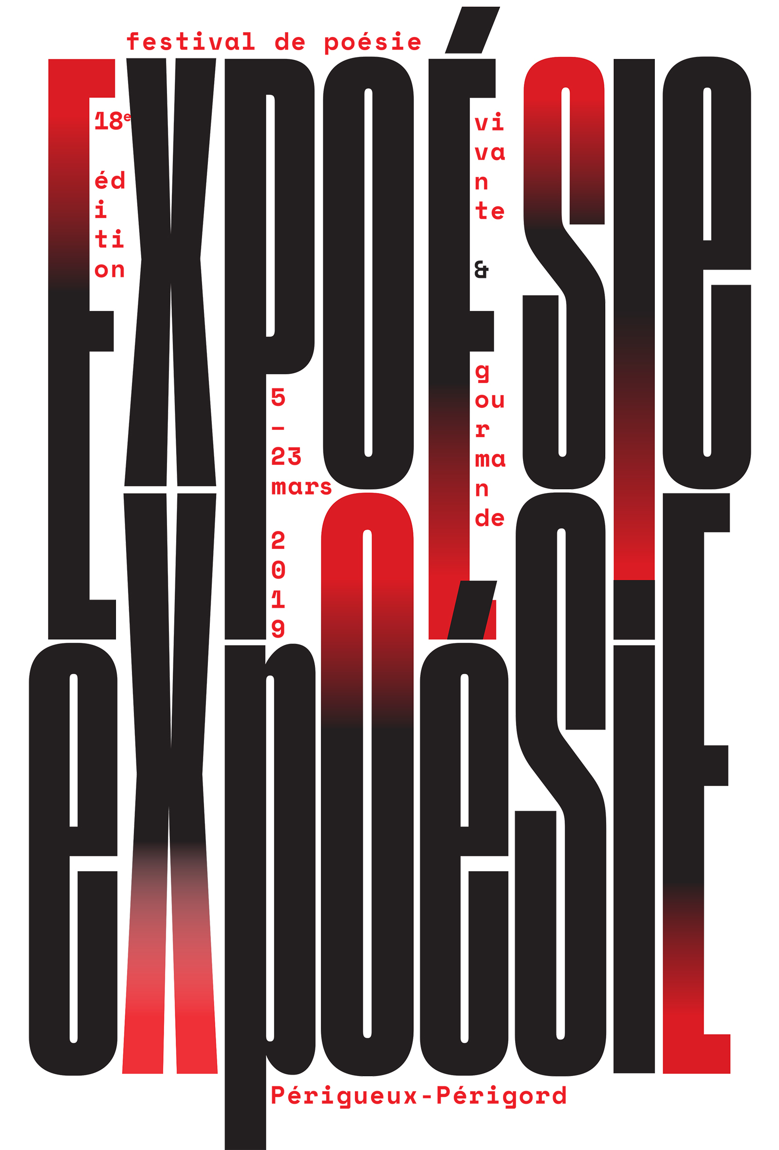 ‘Expoésie’, Périgueux, 2020. Poster for a unique festival in Périgueux – its title a portmanteau combining ‘exposition’ and ‘poetry’.