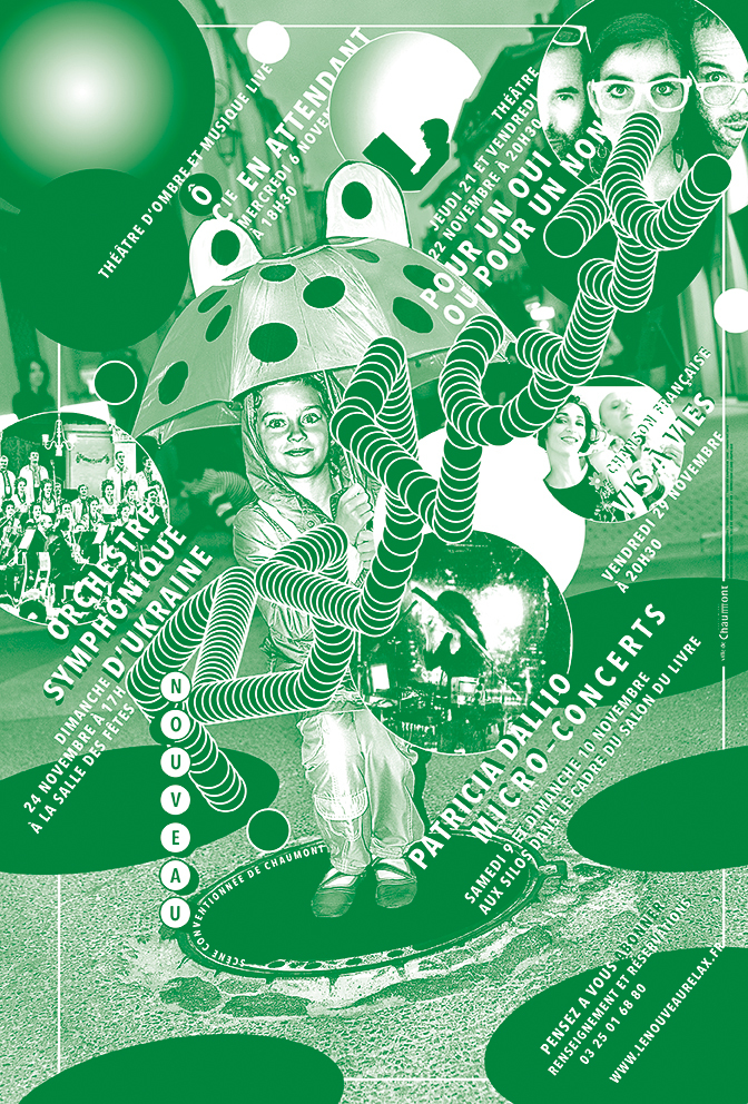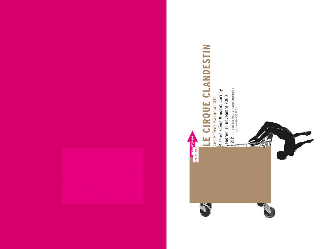 In 1999 Lenz was approached by Les Graphistes Associés, former Grapus members, who had worked for a city theatre south of Paris for four years. The place was Rungis – which is home to the world’s largest wholesale food market. Its conservative mayor had been annoyed and offended by Graphistes Associés’ subversive style and threatened to throw out theatre director Joël Gunzburger if he did not hire somebody else. The group’s coordinator Vincent Perrottet insisted that the theatre management should not hire an advertising agency, and work instead with Lenz.