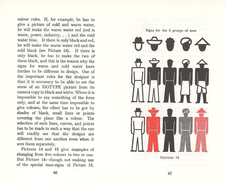 Otto Neurath was a pragmatist, an opportunist, and International Picture Language shows these qualities clearly. In its pages we find proposals for the use of Isotype symbols in public signing. This was merely a speculation by Neurath, but was taken up in earnest after 1945, the year of his death.