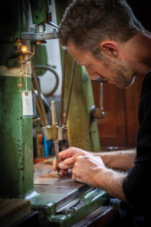 Richard: I began assisting Parminder Kumar Rajput and eventually specialised in punchcutting as well as matrix- making because we had this Hungry Dutch project [completed in 2019]. It was the first new font for hot-metal casting in 40 years, a commission from Russell Maret, a US book artist. It was the first time that a digitally designed font had been translated into physical patterns, punches, matrices, type and it went through the Monotype process and was given a Monotype series number.