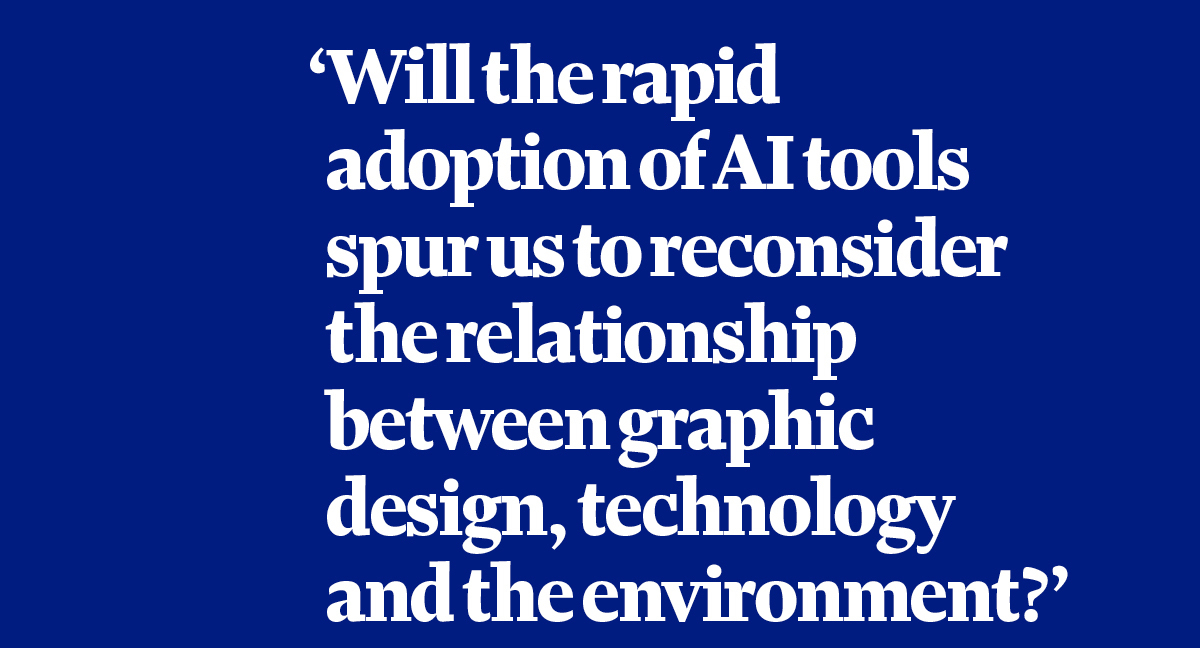 Marian Bantjes concludes ‘Artificial idiot’ (Eye 105), her analysis of generative AI, with an argument that the ‘moral, ethical and political problems’ associated with these technologies are neither new nor exclusive to them. So, while the widespread use of generative AI is undoubtedly a cause for concern due to well documented issues – bias, stereotypes and corporate greed are the examples listed – there is not much to distinguish generative AI, ethically speaking, from technology in general. This is hard to argue against. Authors such as Ruha Benjamin and Safiya Umoja Noble have shown how racist biases are programmed into commonplace computer algorithms, while the wealth amassed by technology corporations depends on routine flouting of environmental, labour and privacy laws and standards. Following this line of thought, it makes little sense to be any more concerned about the ethics of AI than an Adobe or iCloud subscription or even a simple Google search – to the extent that modern technology implies ‘Big Tech’, there are no ethical options available. Meanwhile, the once unsettling proposition of AI fades into the background of computationally mediated life. But, what if, in place of fatalism, the rapid adoption of the new tools might instead provide a spur to reconsider the relationship between graphic design, technology and the environment?
