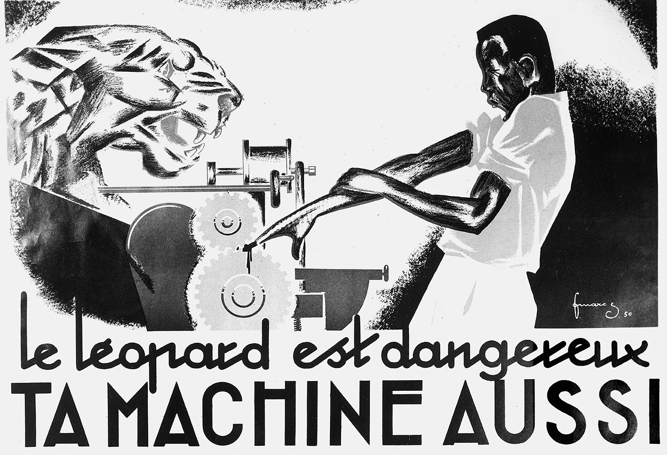 ‘The leopard is dangerous – so is your machine.’ Government safety poster designed by Victor Wallenda (Brother Marc-Stanislas), 1951. Photo by Albert Bayidikila, courtesy Collection KMMA, Tervuren.