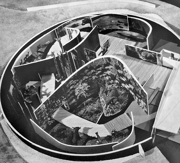 Photograph of Congo Fauna Pavilion, 1958, designed by Constantin Brodzki and Corneille Hannoset, showing the stuffed elephant around which the pavilion was planned.