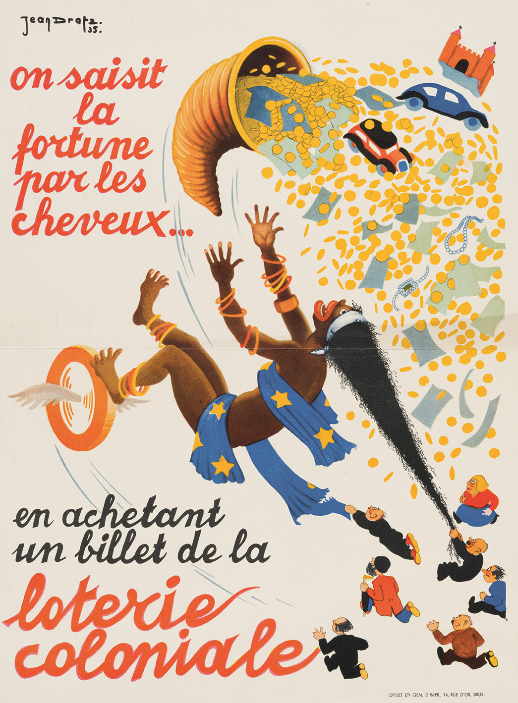 Poster for Loterie Coloniale, which reads: ‘Fortune is grabbed by the hair … by buying a colonial lottery ticket.’ Designed by Jean Dratz, 1935.