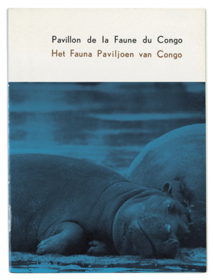 Together with the architect Constantin Brodzki, Belgian graphic designer Corneille Hannoset designed the building, scenography and graphics for the Congo Fauna Pavilion, one of seven pavilions on Belgian Congo and Ruanda-Urundi at Expo 58. A floor plan guided visitors through various themes and past stuffed animals. At the end of the route stood an imposing elephant, around which the building was designed. Hannoset travelled to Congo and London on a mission to kill and stuff the animal, boasting: ‘I was made an Honorary Lieutenant of the Hunt in Léopoldville, for services rendered.’
