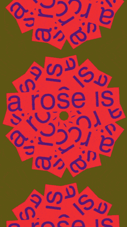 Poster for Weltformat festival, 8-18 October 2022, Luzern, Switzerland, themed ‘Never Not Moving’. While this three-line type poster scrolls down relentlessly, coloured circles appear to ‘grab’ the hard edges of the letterforms and stretch them diagonally across the poster surface like gum. The basic layout of the poster is by Erich Brechbühl, Felix Pfäffli and Josh Schaub. They handed it to seven international designers and studios to make it move. The font used is Ruder Plakat by Lineto.