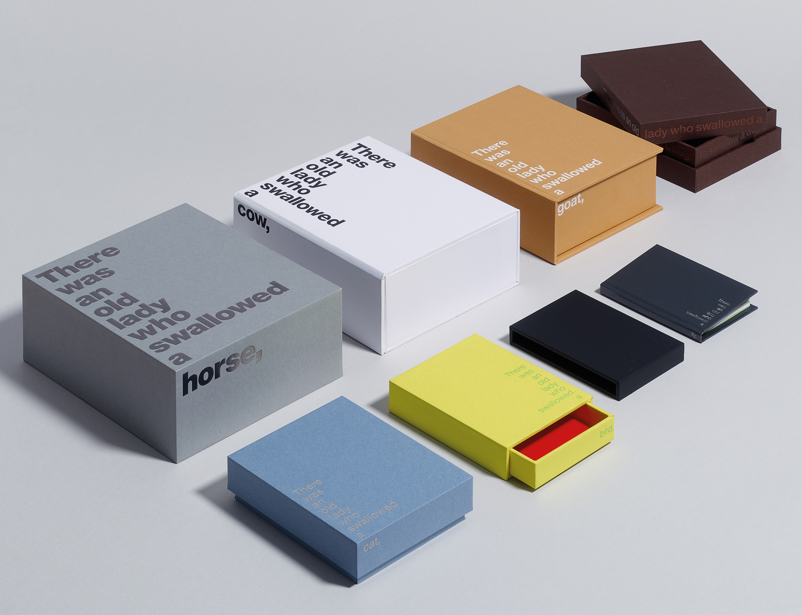A frequent Studio Sutherl& collaborator is Fenton Smith, who runs the London-based printer Boss. Smith wanted to show his factory’s boxmaking capabilities.