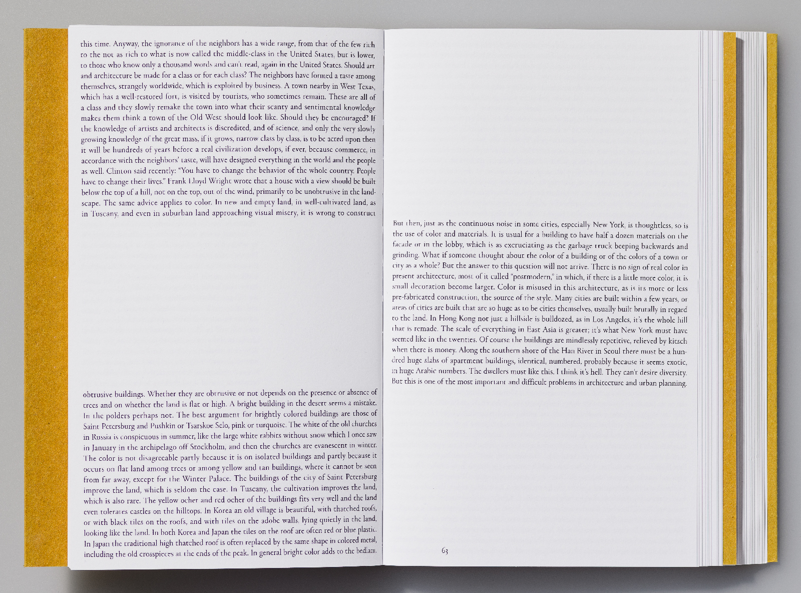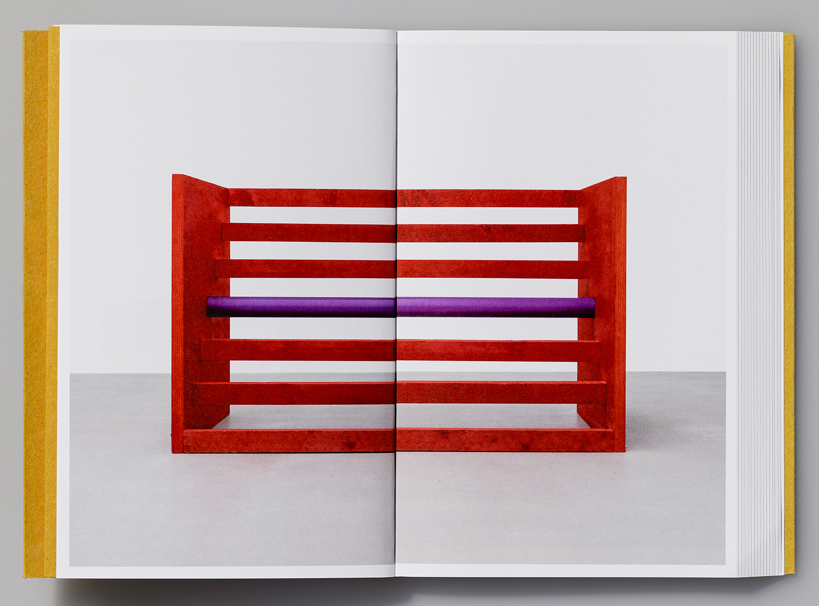 The text layout of Donald Judd refers to the artist’s interest in the exploration and use of space. ‘In terms of material, layout and type choices, we were thinking about [Judd’s] abandonment of the New York life and going to Marfa [in the Trans-Pecos desert region of west Texas] and that environment,’ says Dyakova. ‘We used a very rough material for the cover that resonates with that place.’ Regarding the slanted edge, she says: ‘It is more about how it is connected to the work, to make it work somehow, make it into an object that can be made and produced.’ Photography: Ed Park.