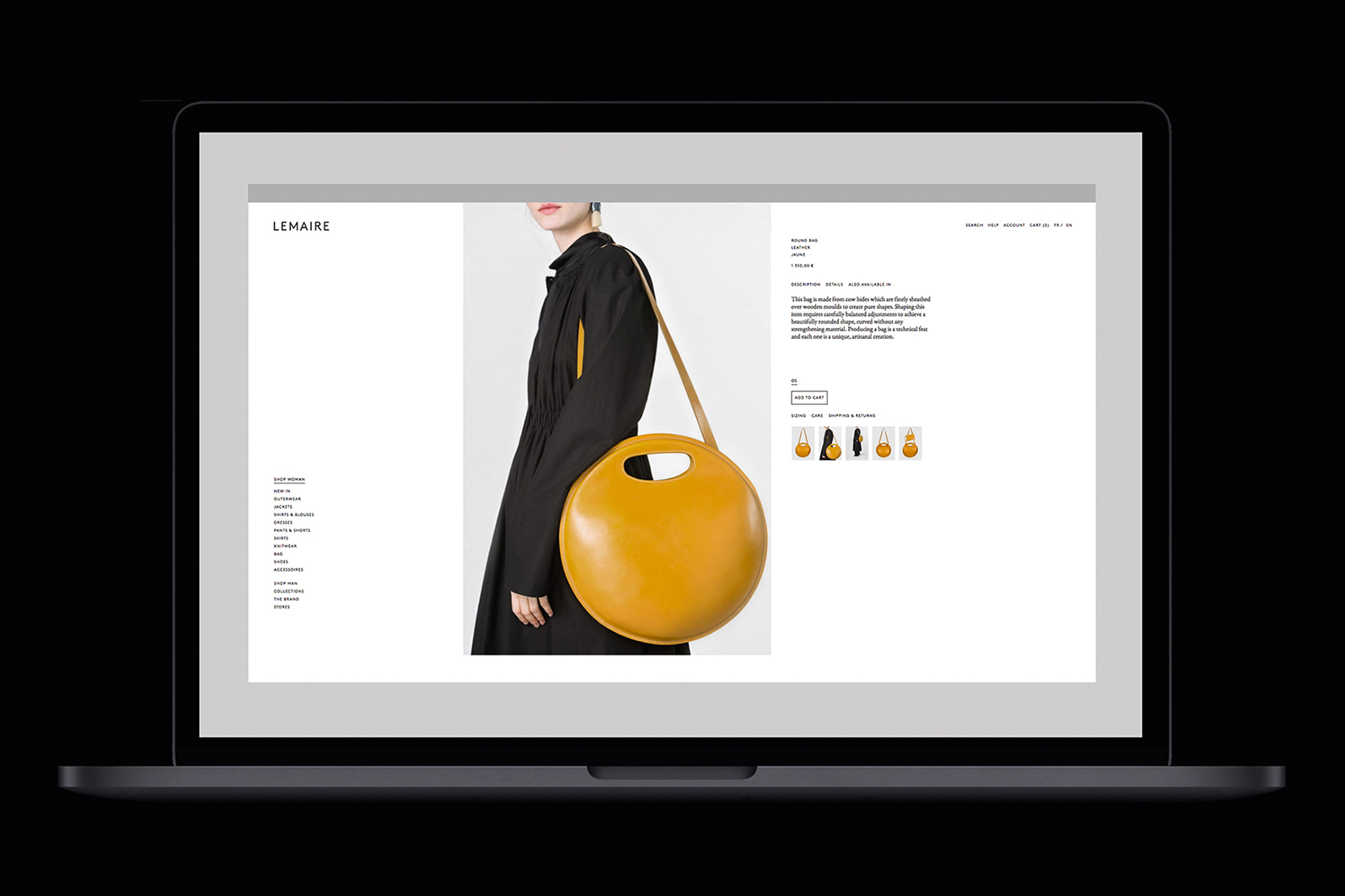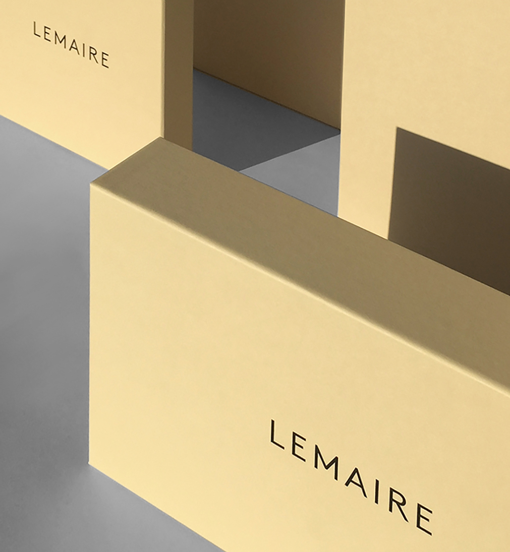 Identity for fashion brand Lemaire, 2021 and ongoing. Founded by Christophe Lemaire in 1990, the quality clothing brand has undergone several iterations and in 2014 Atelier Dyakova was commissioned to rebrand the company. The work began with the logo and brand identity guidelines and extended to the website, labelling, packaging, stationery, look-books and digital communications. Photography: Polina Hohonova.