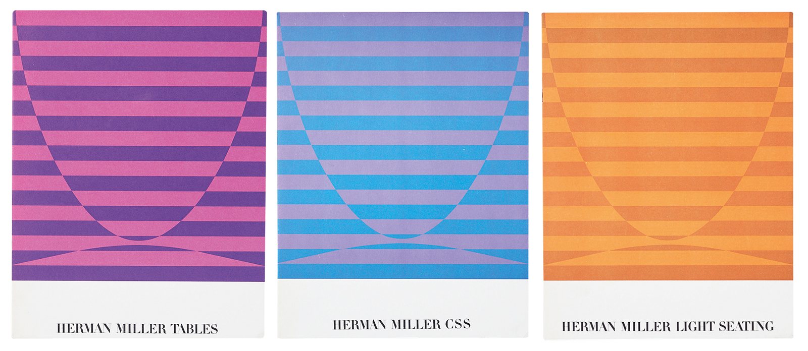 Three of seven Herman Miller product brochures for tables (3), light seating (4) and the CSS (5), packed in a cardboard slipcase, 1962. Top. Tomoko J. Miho, formal college graduation portrait, 1956, taken when she was 24.