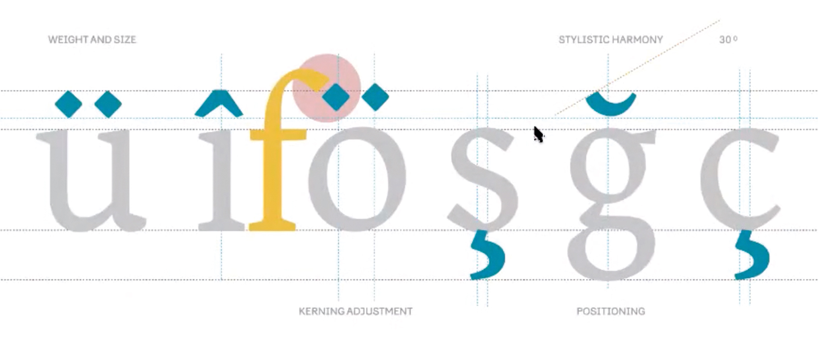 The session began with Anıl Aykan from Barnbrook in London, who developed an interest in the particularities of the Turkish alphabet (in 1928, a few years after the collapse of the Ottoman Empire, Atatürk had replaced the former Arabic-based Turkish alphabet with a Latin-based one). Intrigued by the principle that the Latin alphabet is used in several cultures, Aykan began to explore examples of the same type used for different languages and sought to investigate the visual expression and texture unique to Turkish. Linguistic features such as frequently used letters vary among languages and can therefore lend them different appearances. As Aykan explained, the frequency of characters with vertical strokes is characteristic of Turkish. Based on these results, Aykan designed the typeface Atatype (named after Atatürk) specifically for the Turkish language. To mention one detail among many, she paid special attention to the ligature of ‘f’ and the iconic dot-less ‘i’ (visible in her own first name Anıl).