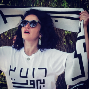 Examples of Arabic typography in a presentation by Golnar Kat Rahmani, an Iranian designer who lives in Berlin – here, on fashion garments.
