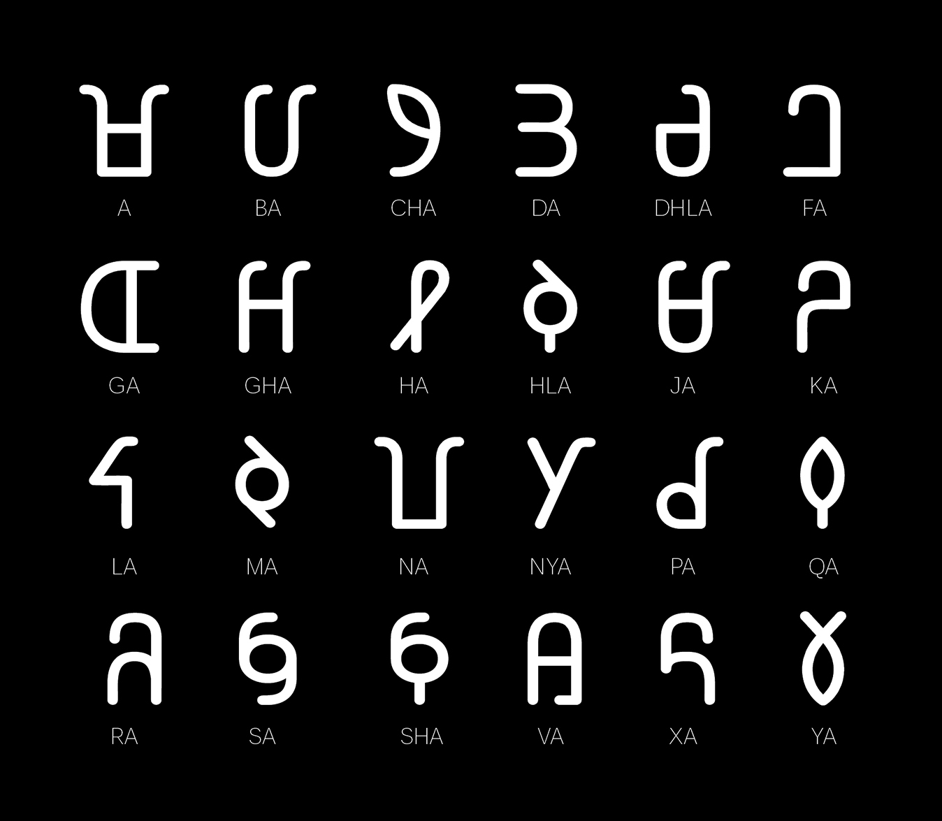 Glyphs by Tapiwanashe Sebastian Garikayi (Zimbabwe) for the Mwangwego script from Malawi (1979).