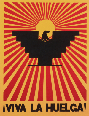 ¡Viva La Huelga! [Long Live the Strike], a poster for the United Farm Workers, ca. 1965. This features an Aztec eagle, the symbol of Mexican pride designed by activist Richard Chavez in 1962.
