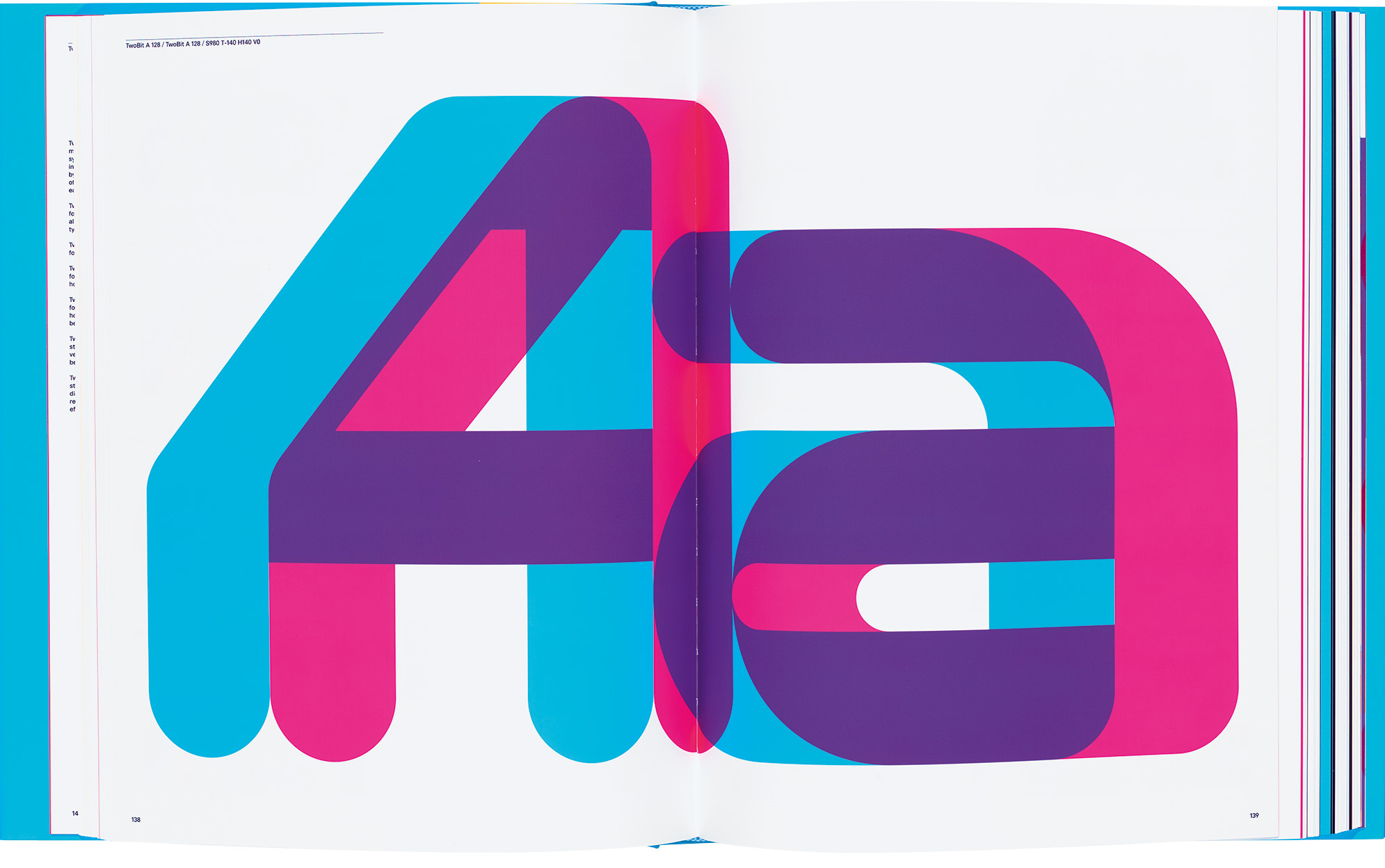 ‘An exploration of 7,762,392 typefaces’, an additional subtitle for this tome, sets the scene for what is to come. System Process Form continues with a quote from Anni Albers in 1958: ‘The conscientious designer does not himself design at all but rather gives the object-to-be a chance to design itself.’ MuirMcNeil’s book sets out to explore variations on their Two Type System, a seemingly infinite collection of modular, geometric typography. As their website states, their activities are focused, ‘on exploring systematic and algorithmic methods in type design, graphic design and moving image’. This book seems to be a perfect illustration of their practice.