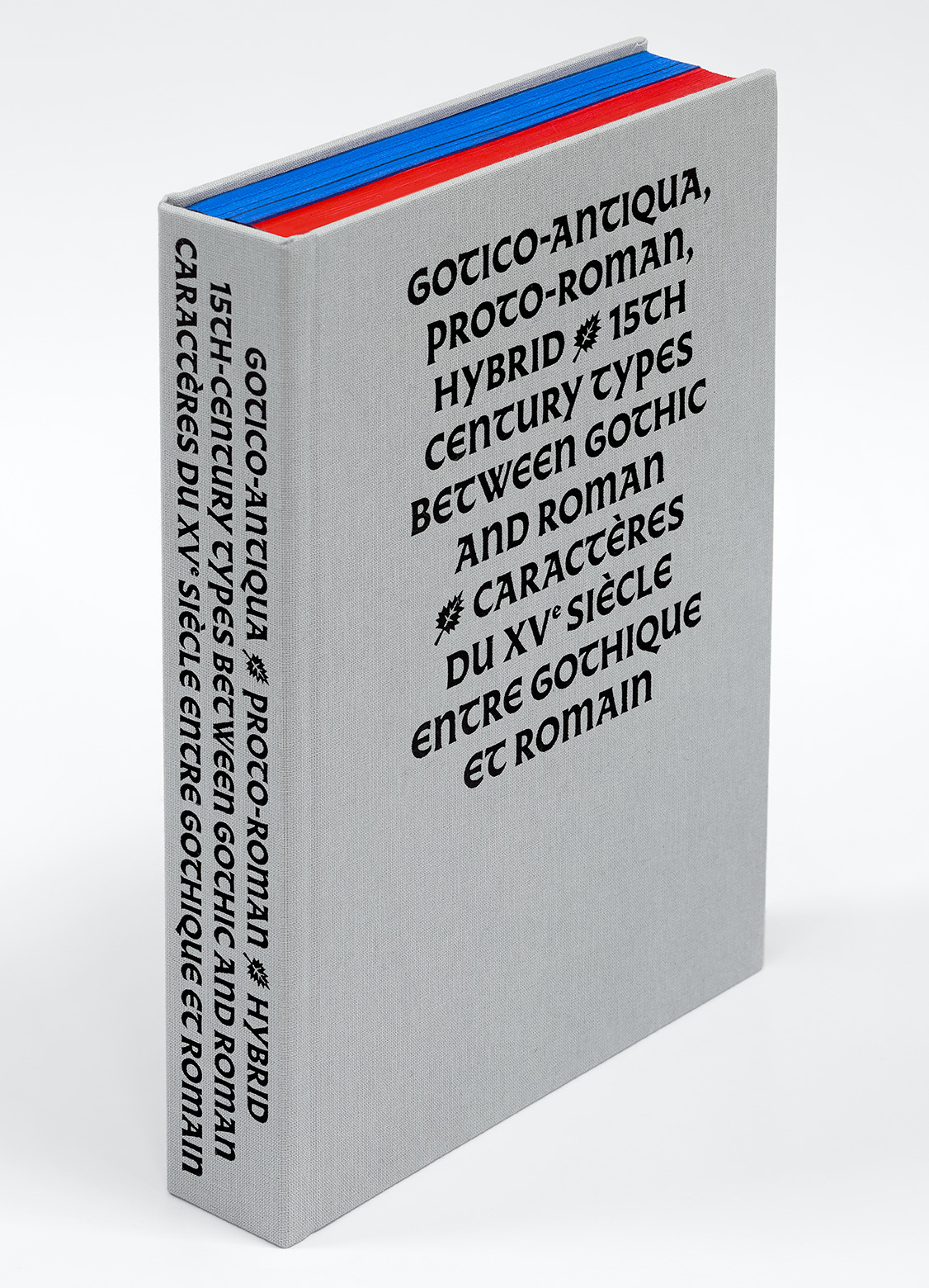 Gotico-Antiqua, Proto-Roman, Hybrid, with all texts presented both in English and French, is a type history book with a fresh approach. Its subject is the late fifteenth century, when scribes gave way to the rapid spread of printing with movable type; the focus is on the type cutting experiments that led to the transition from Gutenberg’s imitation of handwritten broken scripts (aka fraktur or gothic) into what we now call roman. In spite of its subtitle, 15th century types between gothic and roman, quite a bit of attention goes to echoes of that stylistic jump in later times.
