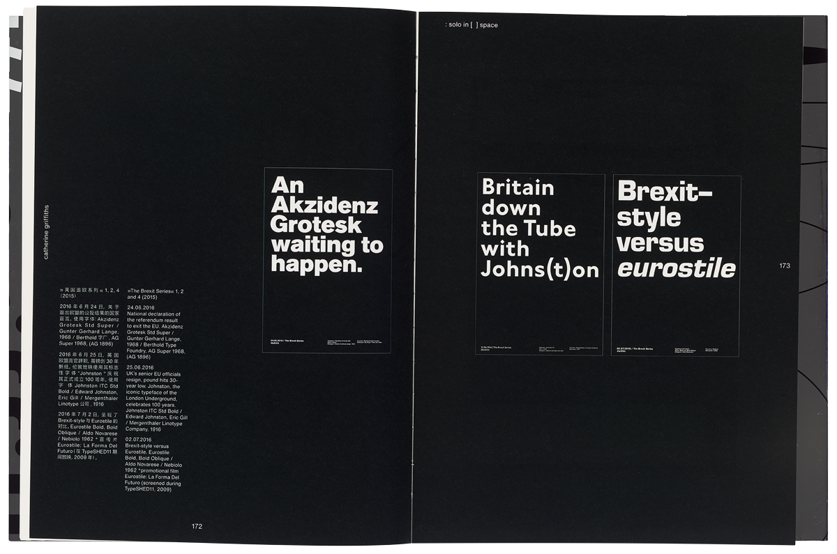 Catherine Griffiths: Solo in [ ] Space by Zhihua Duan with Catherine Griffiths is ostensibly the catalogue to an exhibition held at The Space Gallery, Shanghai in 2019, but of course it is much more. The dazzlingly reflective silver cover (an artfully folded poster) announces a book that comes from someone with a deep love of type and print and a highly developed personal aesthetic.