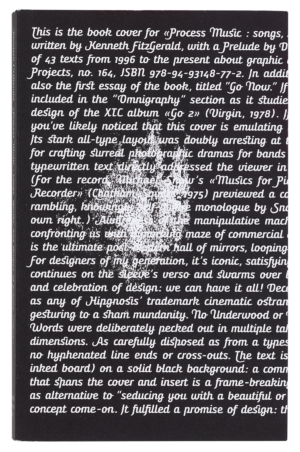 From the moment you pick up Process Music, you become an active participant. The cover of the shrink-wrapped volume is emblazoned with several reviews from prominent design practitioners. In a short note, Onomatopee explains that this design choice was made on commercial grounds, since the typographic cover ‘might not sell itself in our hasty, visual-oriented culture.’