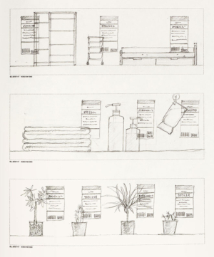 The other sort of drawing I would call drawings, not sketches, as they are more measured and seem more expressive of Hara’s feelings, exemplified by the large, curvy, shaded, natural forms on the first eighteen pages of the book: ‘I drew what came into my head,’ he says. Sometimes a single idea conjures a long sequence of drawings that flow naturally from one to the other, like a Tokyo Olympics symbol with figures forming in circles and morphing into a globe and planets. You feel he would rather carry on drawing than pick one image for commercial use, reflecting a tension between his personal ideals and the commercial necessities in play, such as Muji’s need to sell more brooms and toothbrush holders. A feeling for the natural world and travelling to its far corners comes across in drawings of coral, maps, birds and projects like his 2025 Blue Ocean Dome pavilion to address marine pollution. Hara believes the Japanese aesthetic stems from a respect for the transcendental presence of nature.
